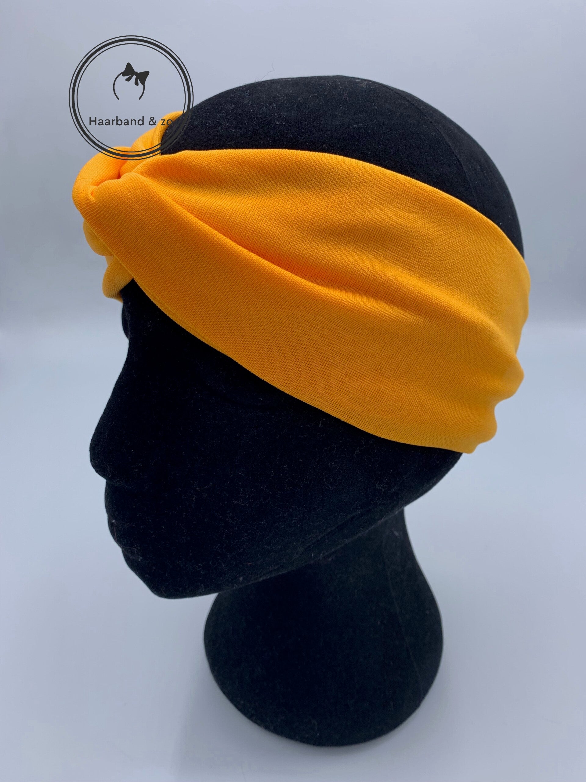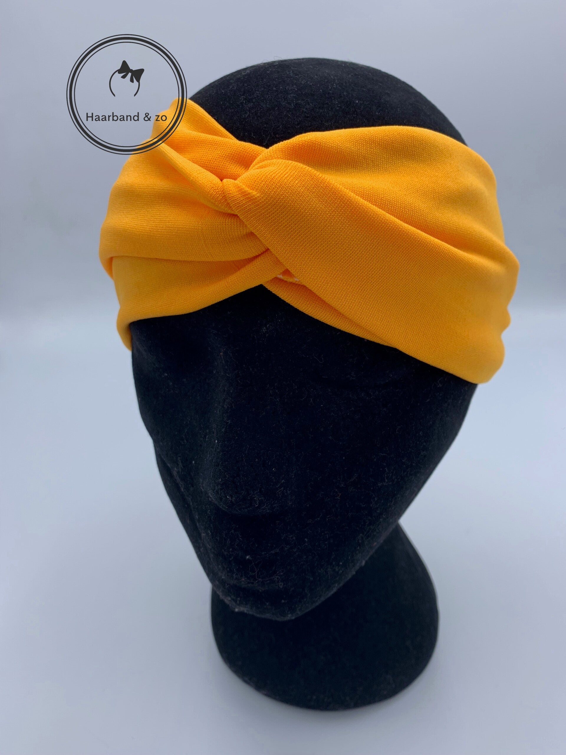 - Mooie soepele elastische haarband, met twist in een oranje/gele kleur.