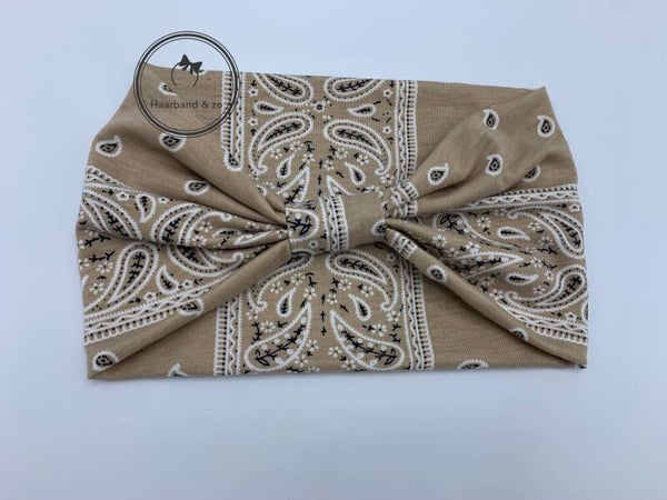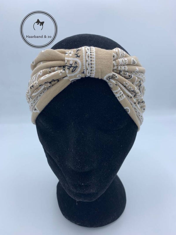 Super brede haarband met knoop in bandanamotief, beige (art.nr 214-11)