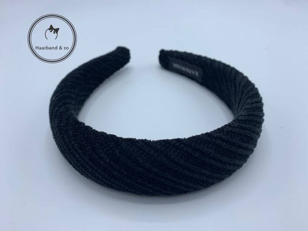 Gewatteerde haarband van geribbeld fluweel, zonder knoop of twist in de kleur zwart (art.nr. 63-04)