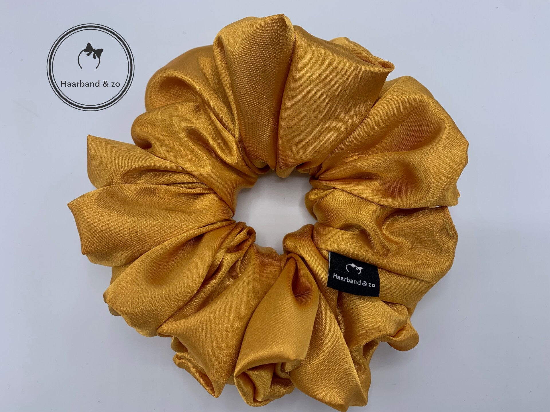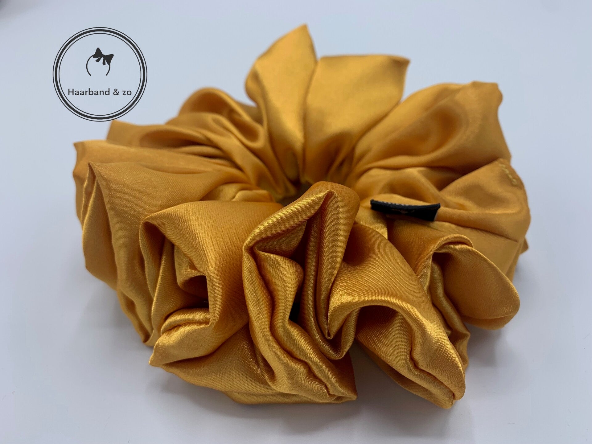 - Extra grote XL-scrunchie in de kleur goudgeel, van ons eigen merk.