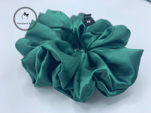 - Extra grote XL-scrunchie in de kleur smaragdgroen, van ons eigen merk.