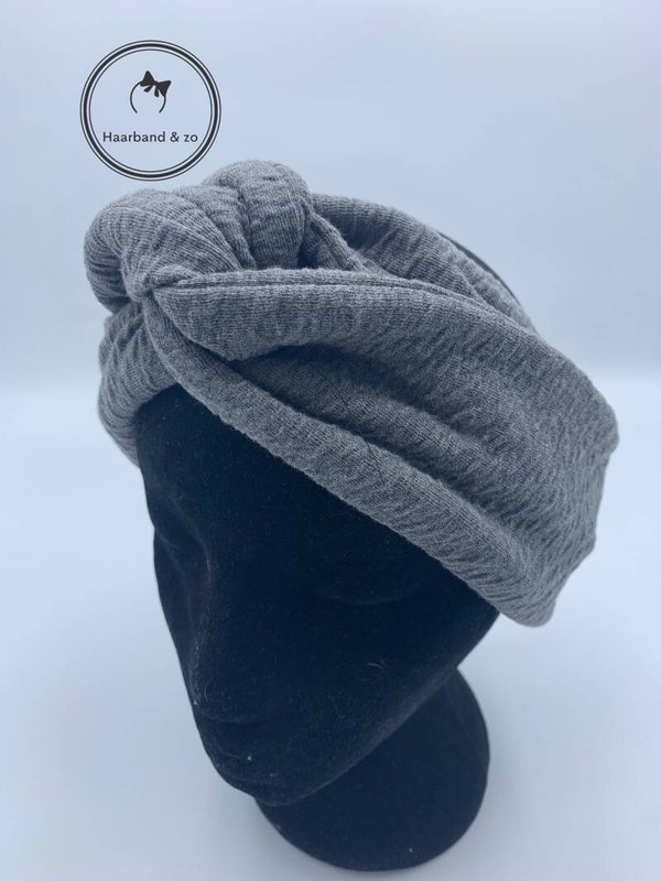 - Prachtige haarband van heerlijk zacht, reliëf tricot, antracietgrijs, van ons eigen merk. Dit is dikke stof, dus veel volume.