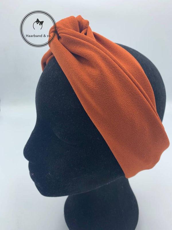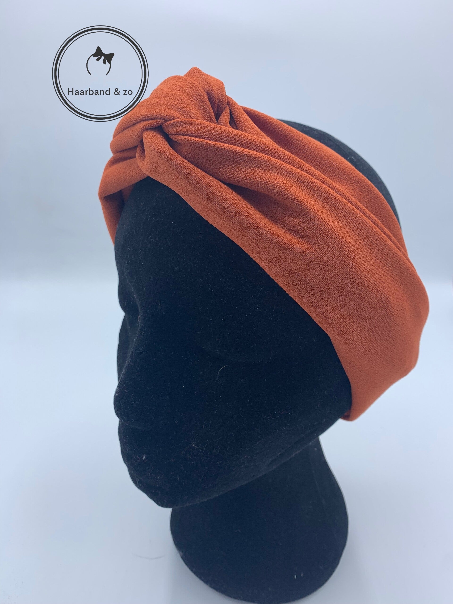 - Prachtige haarband van scuba crêpe roestbruin, van ons eigen merk. Soepele stof.