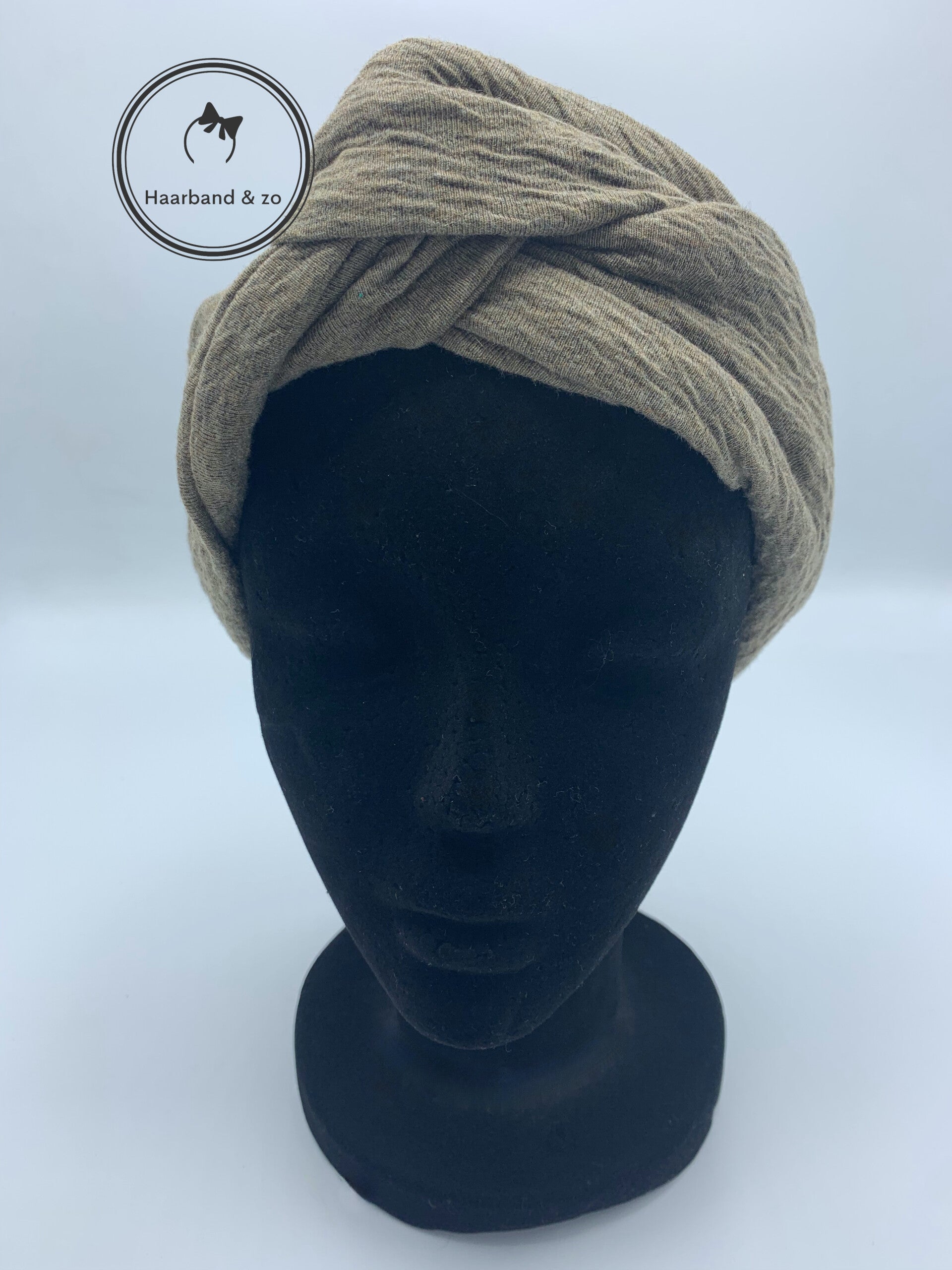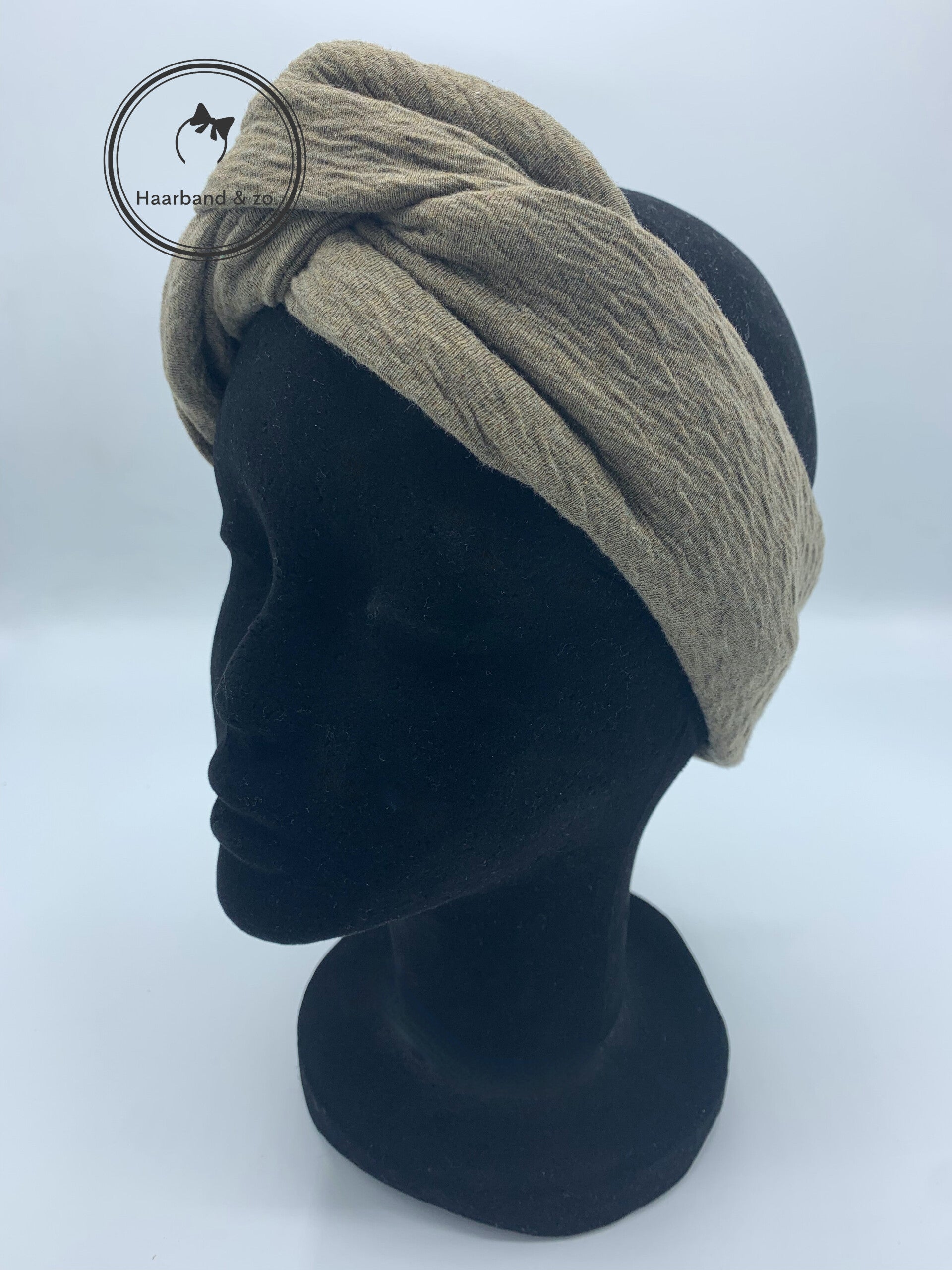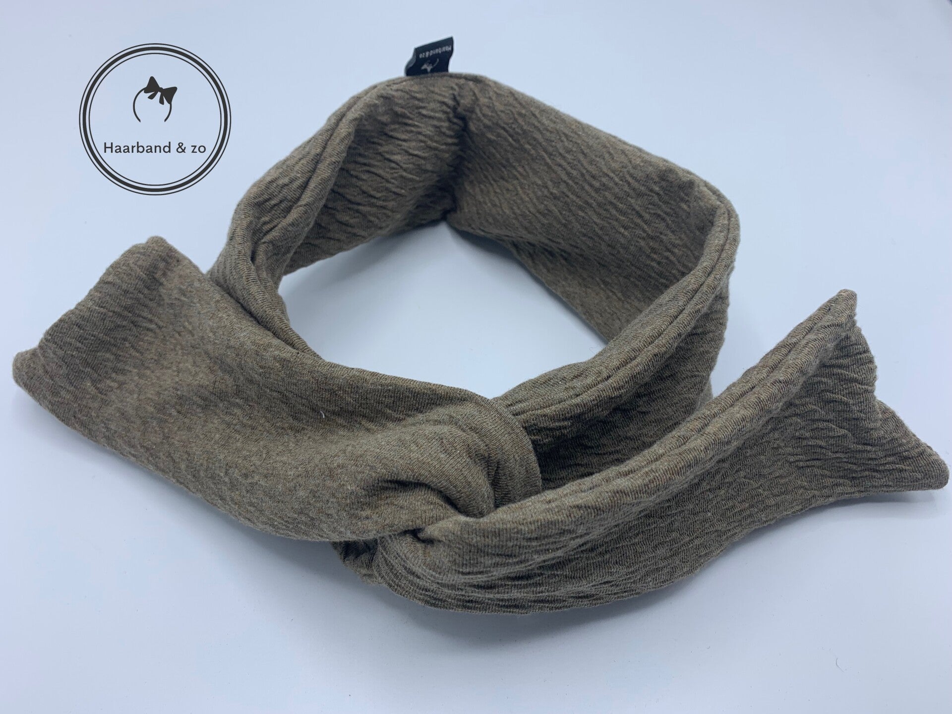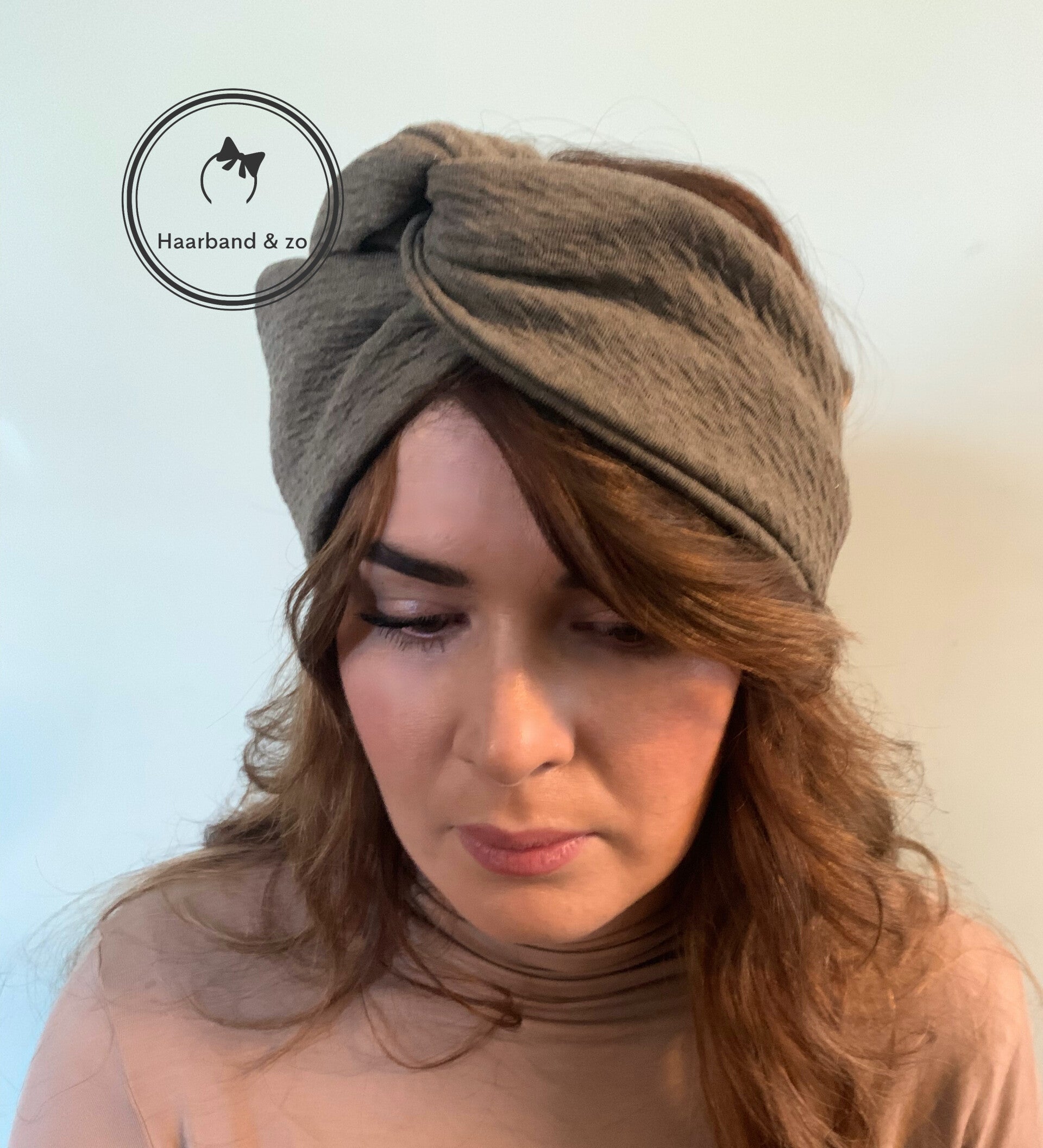 - Prachtige haarband van heerlijk zacht, reliëf tricot, taupe, van ons eigen merk. Dit is dikke stof dus veel volume.