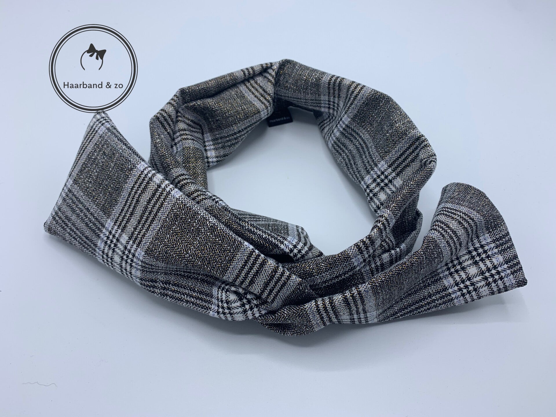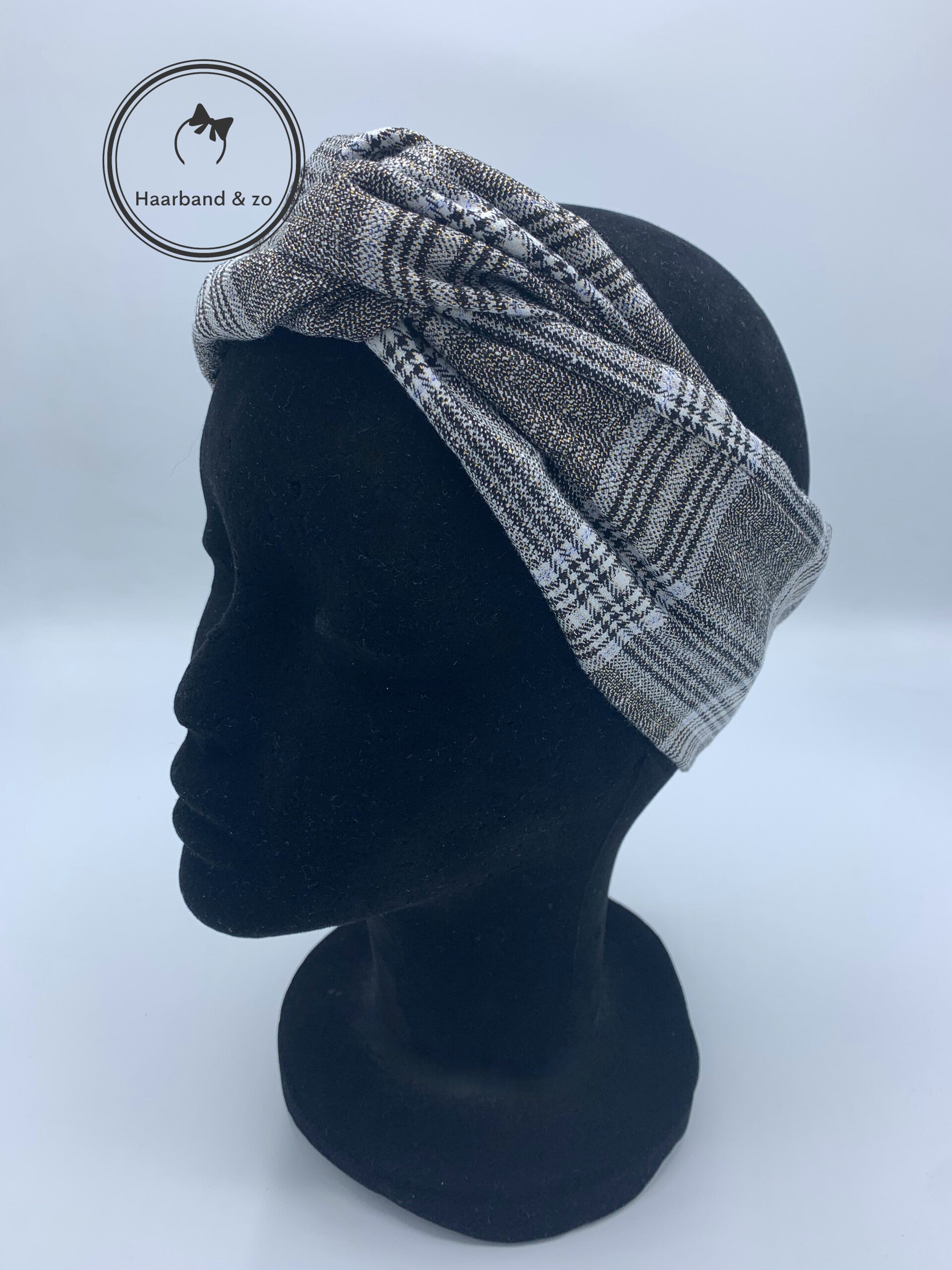 - Haarband met ijzerdraad in ruitmotief met glitterdraadje, grijs/wit, van ons eigen merk.