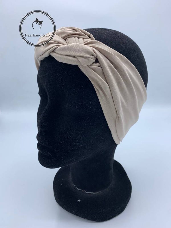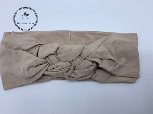 - Haarband van elastisch viscose, met vlechteffect in de kleur beige, van ons eigen merk.