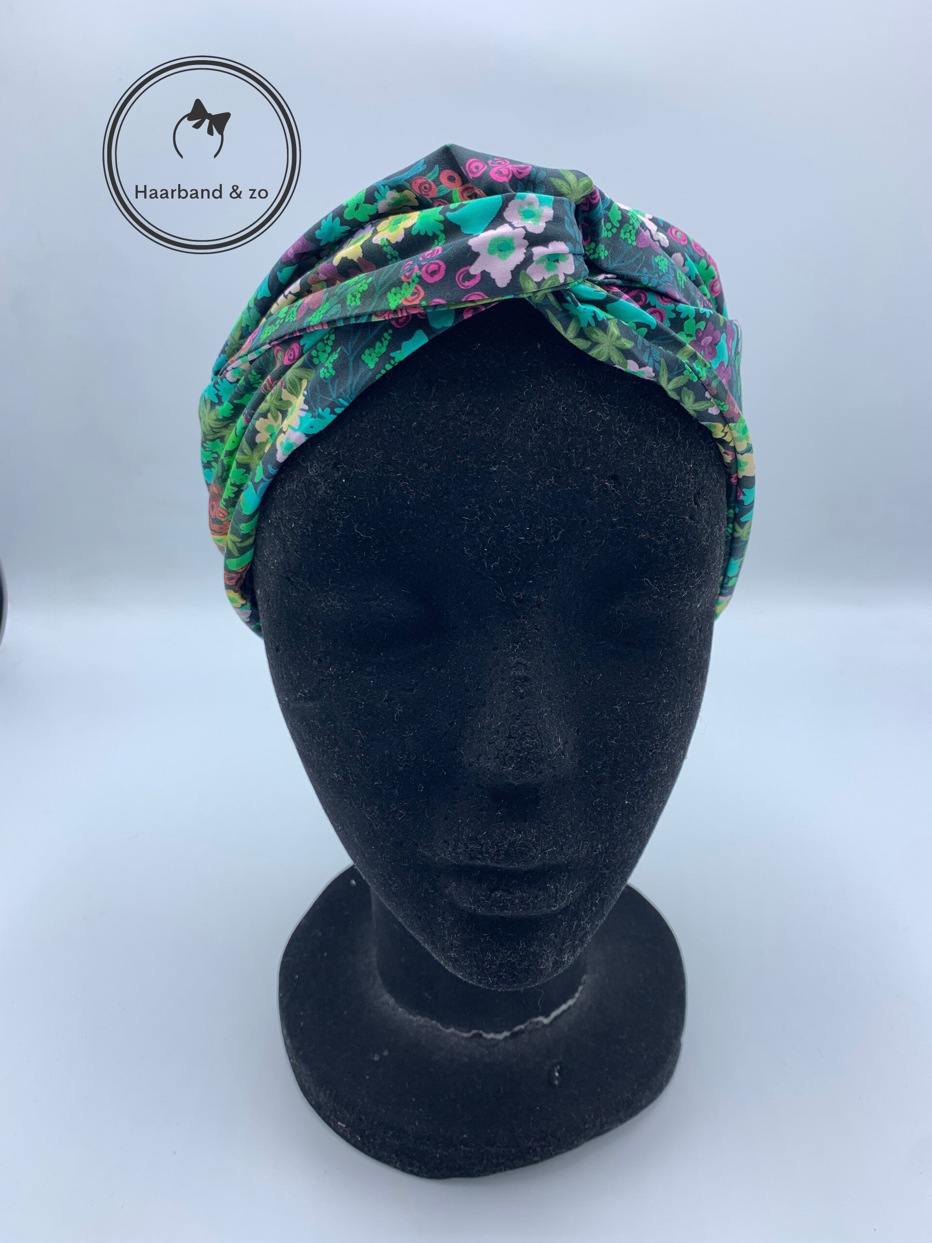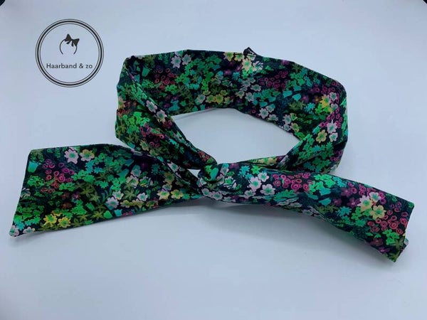 - Haarband met ijzerdraad van katoen, in groene bloemenprint, van ons eigen merk.