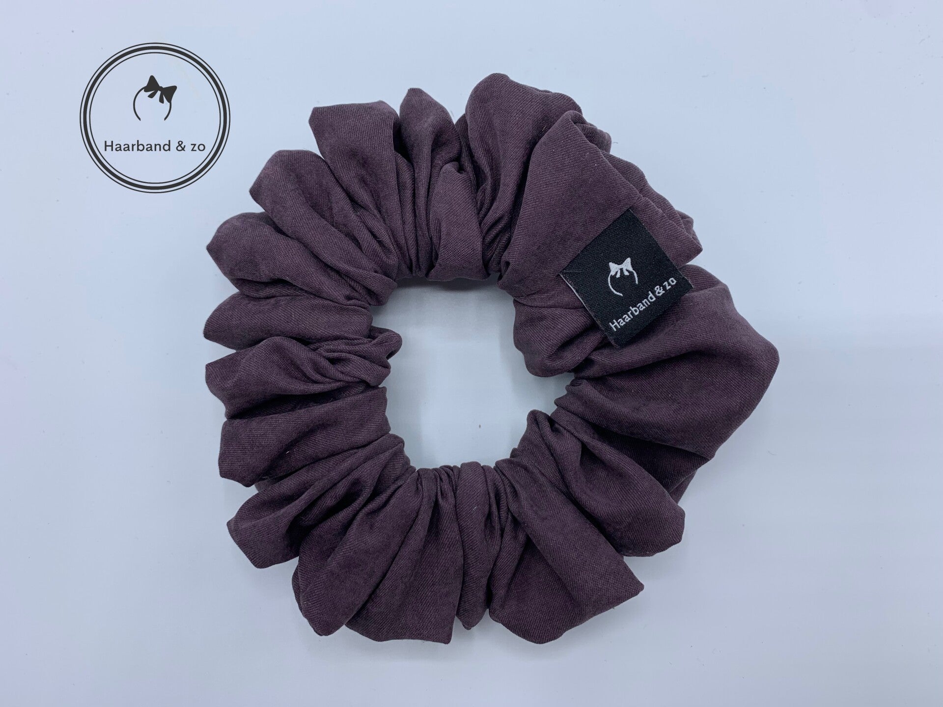 - Scrunchie, in suede look, aubergine. Van ons eigen merk.