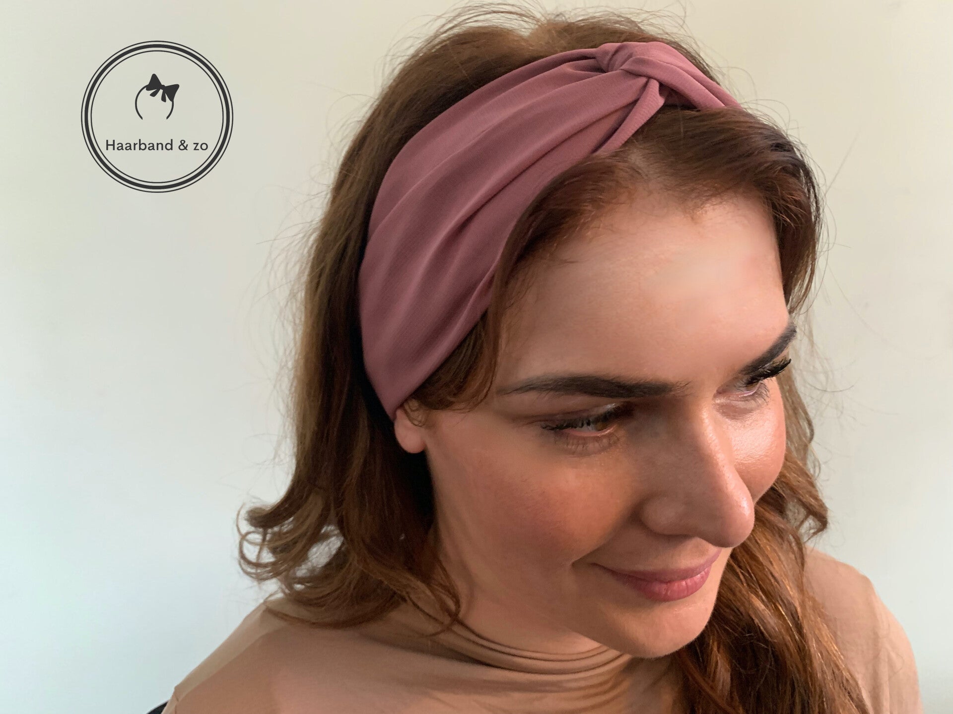 - Haarband van chiffon, met twist en band van elastiek in een mooie oud roze kleur, van ons eigen merk.