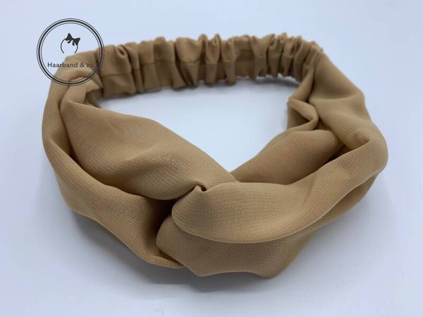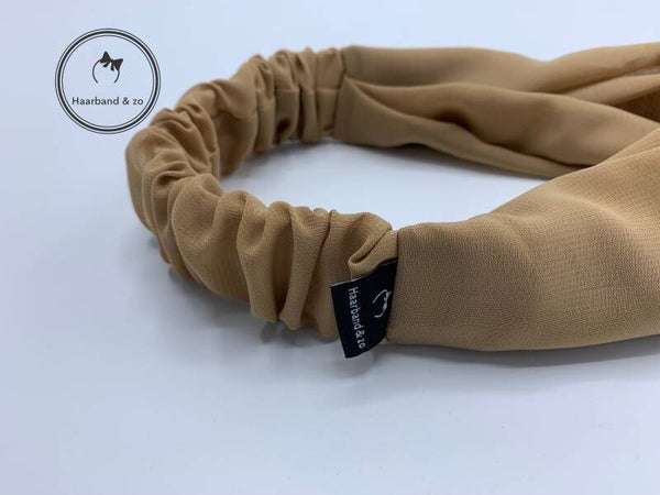 - Haarband van chiffon, met twist en band van elastiek in een khaki kleur, van ons eigen merk.