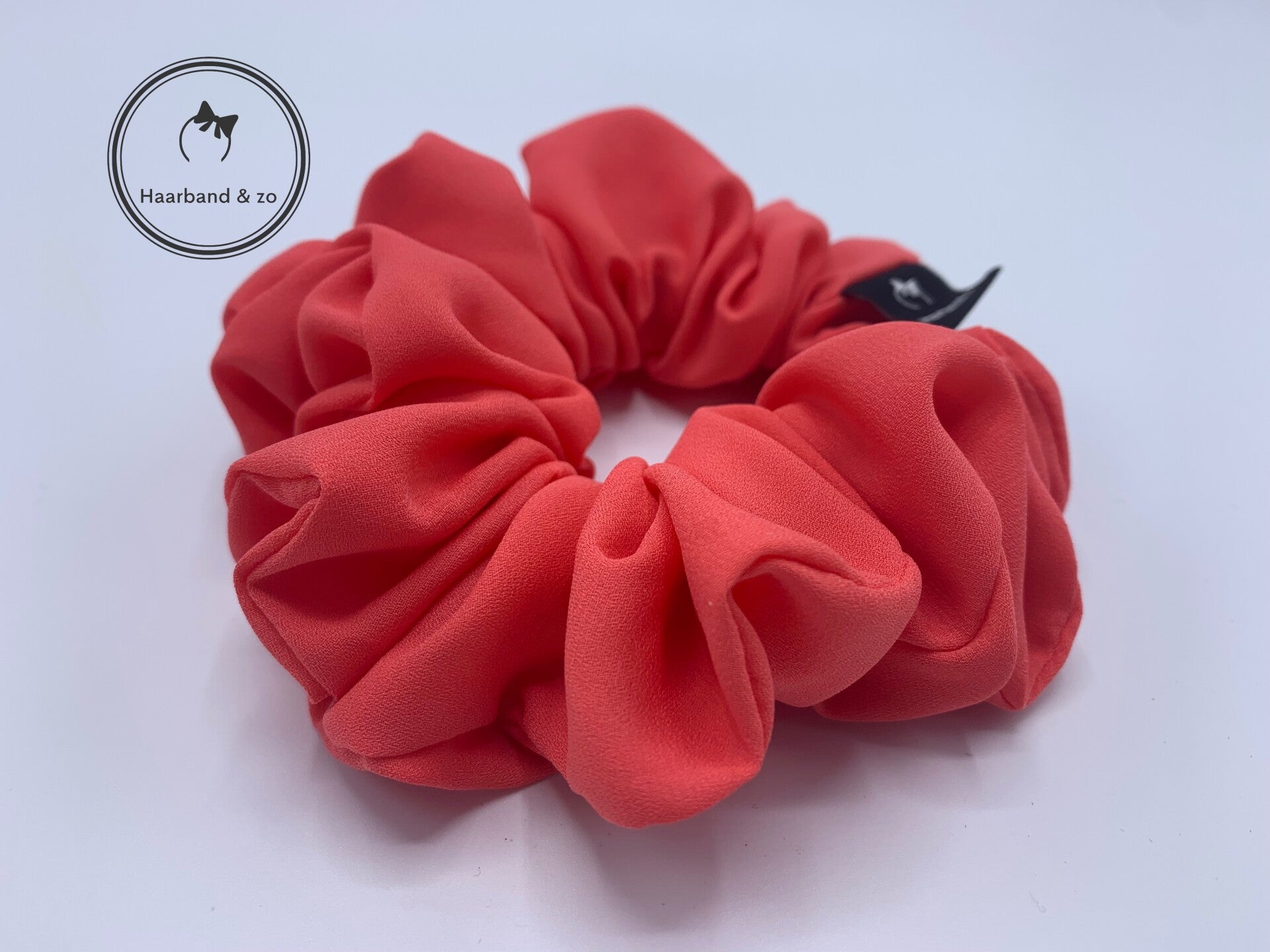 - Scrunchie, van chiffon in koraal. Van ons eigen merk.