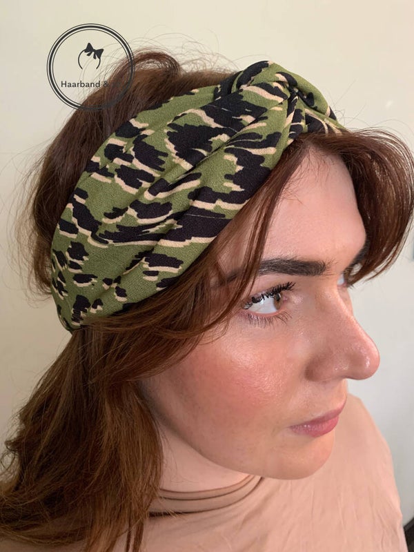 - Haarband met twist en elastische band in oranje dierenprint, van ons eigen merk.