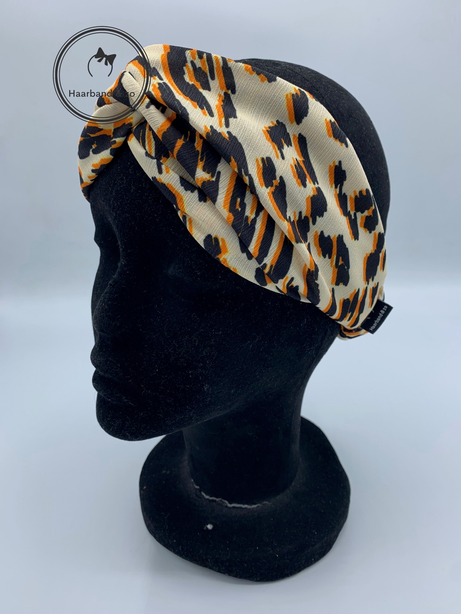 - Haarband met twist en elastische band in cremekleurige dierenprint, van ons eigen merk.