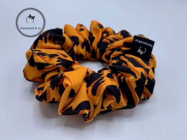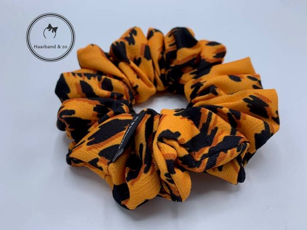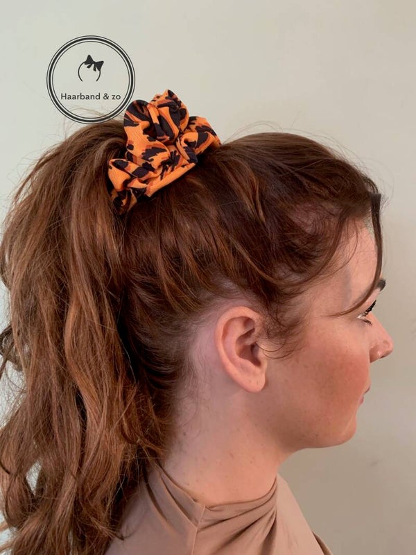 - Scrunchie, in oranje dierenprint. Van ons eigen merk.