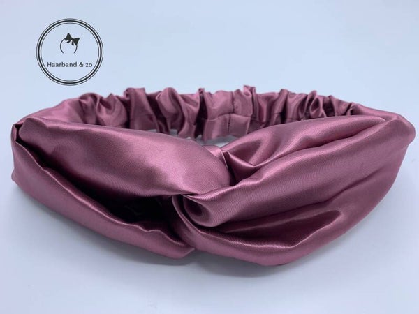 - Elastische haarband van ons eigen merk in glanzend satijn, in de kleur lavendel. De haarband heeft een twist en elastische band.