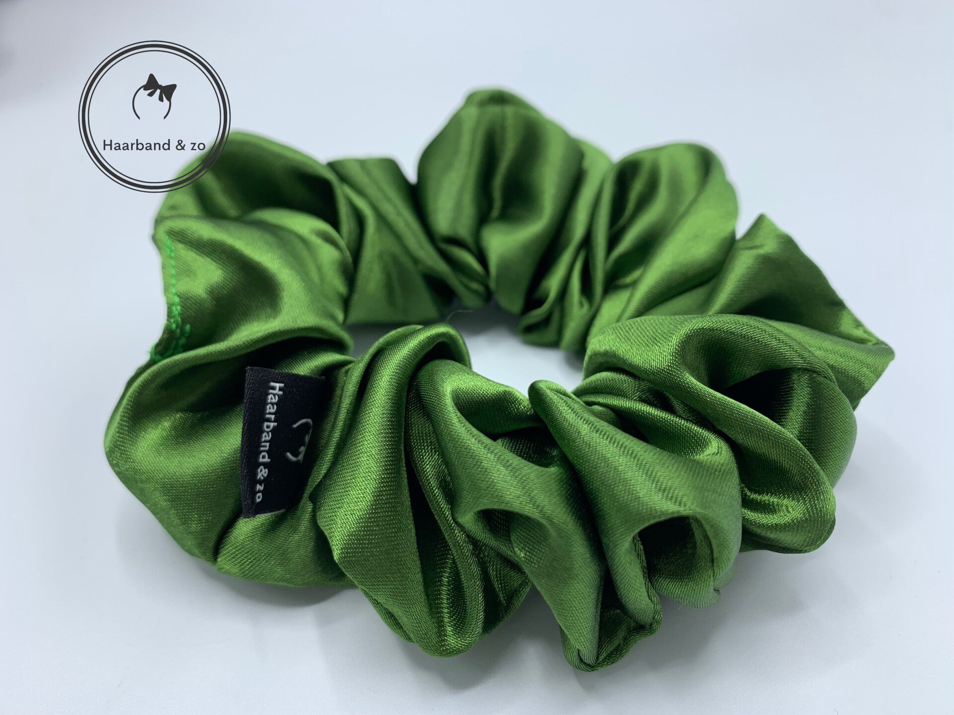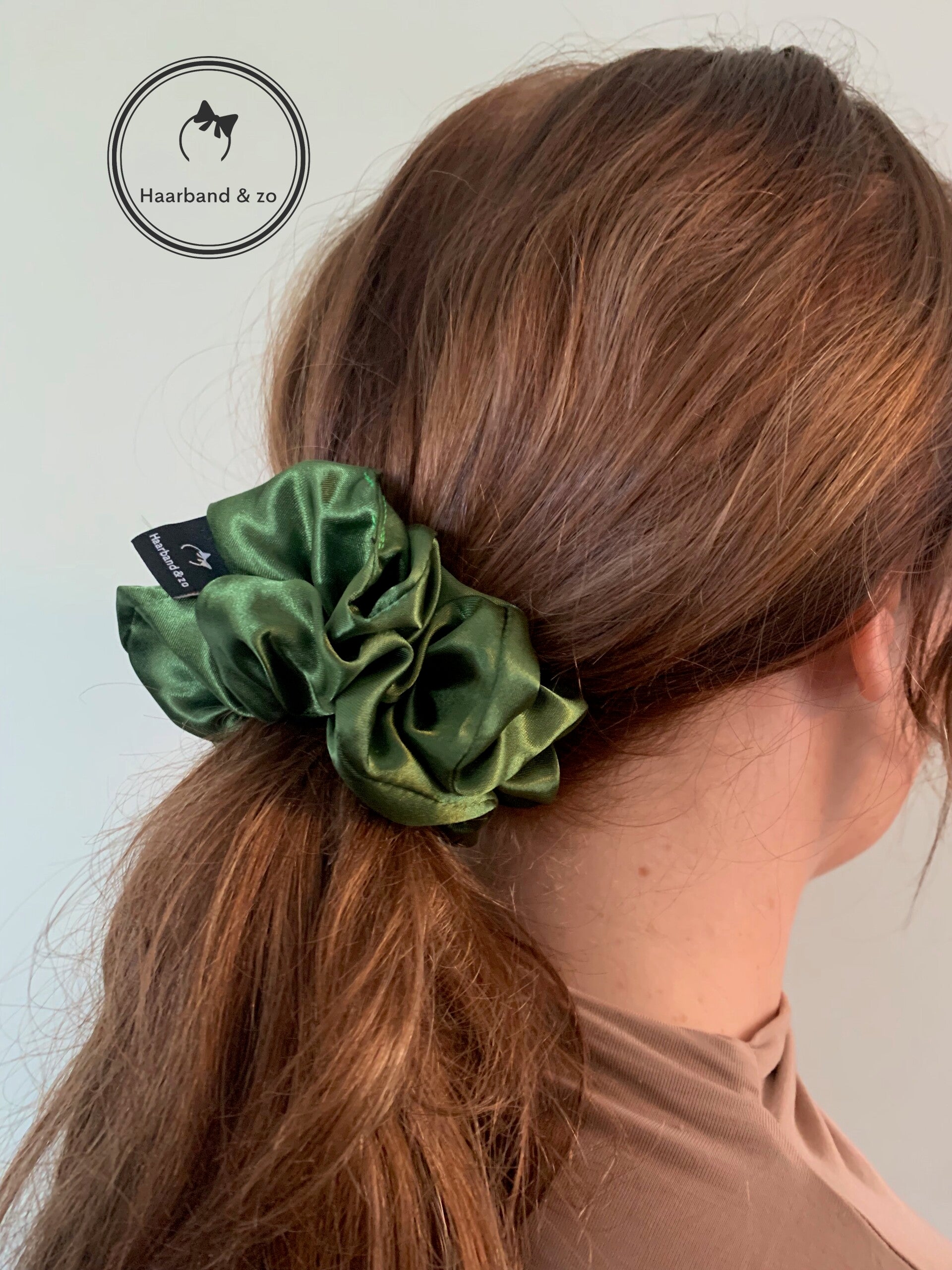 - Scrunchie van satijn, groen. Van ons eigen merk.