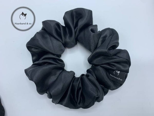 - Scrunchie van satijn, zwart. Van ons eigen merk.