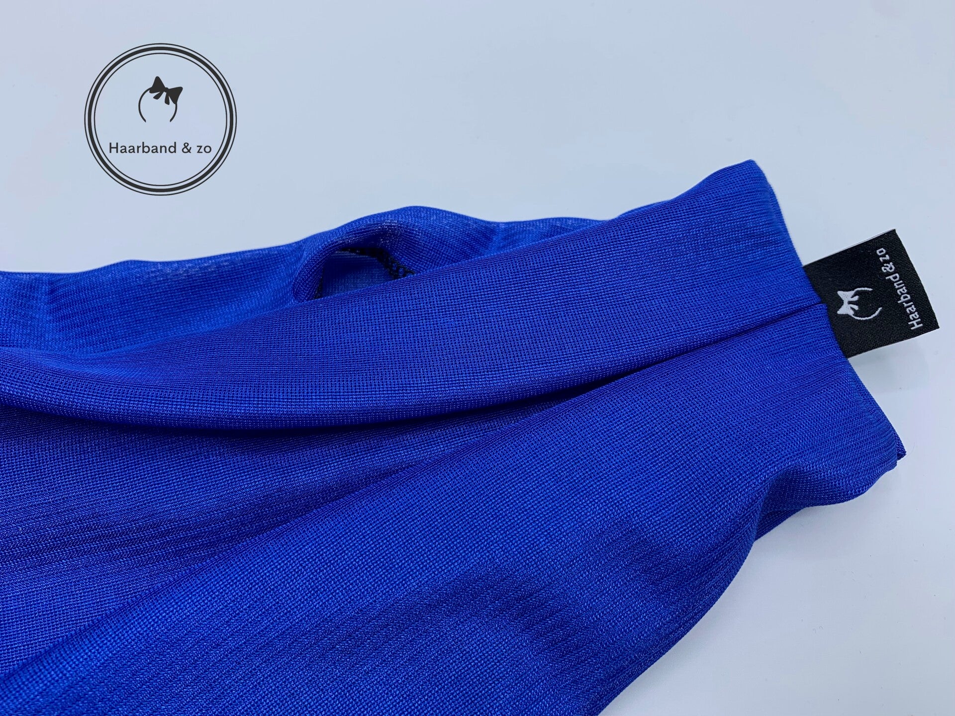 - Mooie soepele elastische haarband, van fijne iets glanzende gestreepte stof, semitransparant in de kleur kobaltblauw. Van ons eigen merk.
