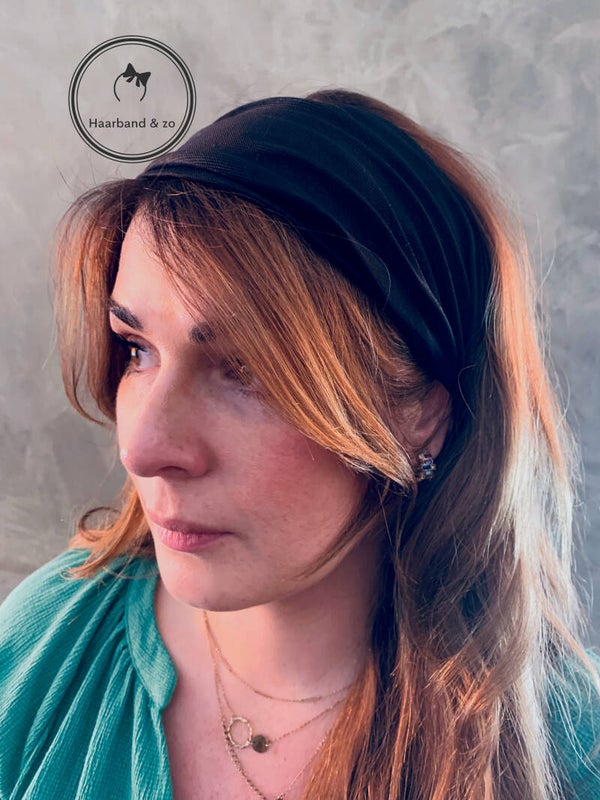 - De stof van deze haarband is op het breedste punt ruim 20cm, je kunt de haarband dus breed, maar ook gerimpeld als een smalle band dragen.