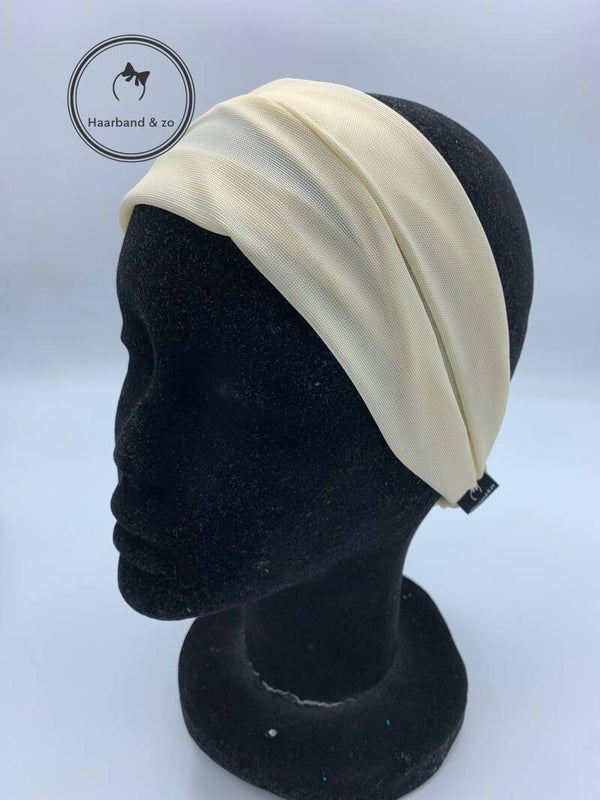 Haarband & zo, brede elastische haarband in tricot voeringstof, roomwit, met elastische band (art.nr. 67-08)