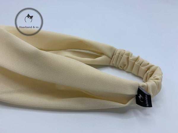 - Een mooie basic deze elastische haarband van semitransparante tricot voeringstof in de kleur roomwit. Met een elastische band. Van ons eigen merk.