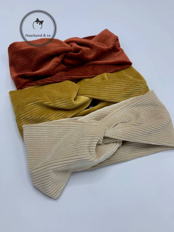 - De haarband is verkrijgbaar in 3 kleuren, beige, okergeel en roestbruin.