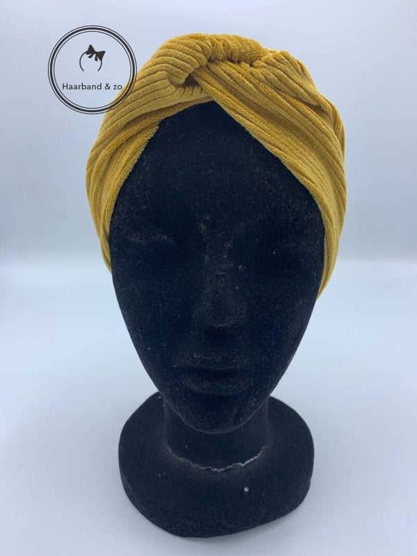 Haarband & zo, Elastische haarband met twist van elastische ribfluweel, okergeel (art.nr. 71-05)