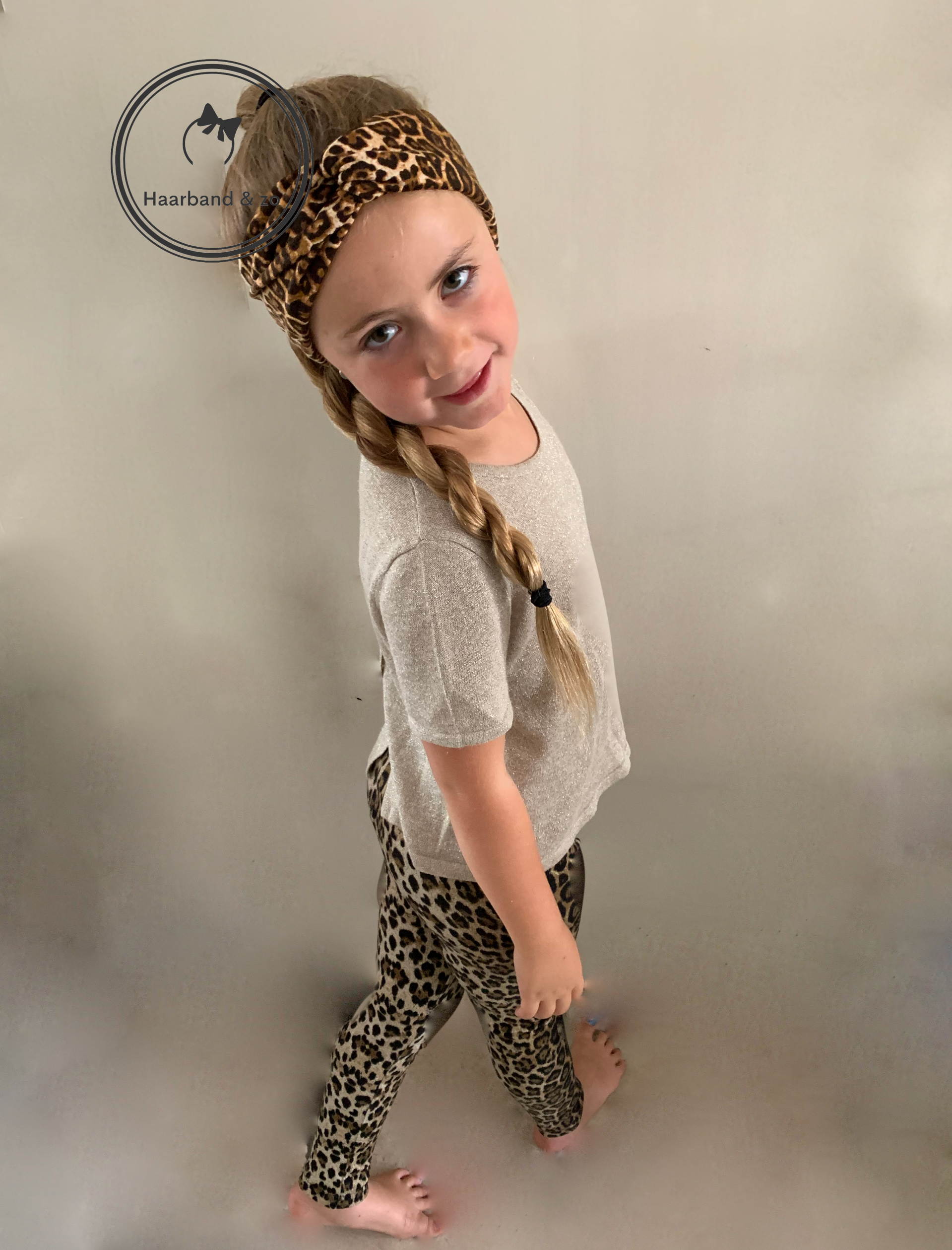 - Mooie soepele elastische haarband, van fijn tricot in luipaard print, in zwart met bruine kleur.