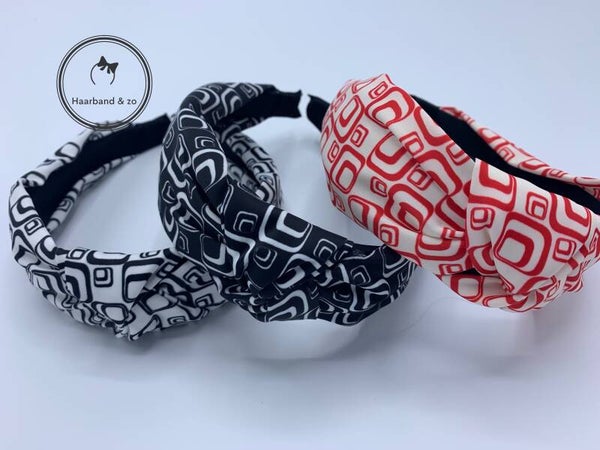- Mooie brede satijnen (boog)haarband, 2 kleuren print, zwart met wit.