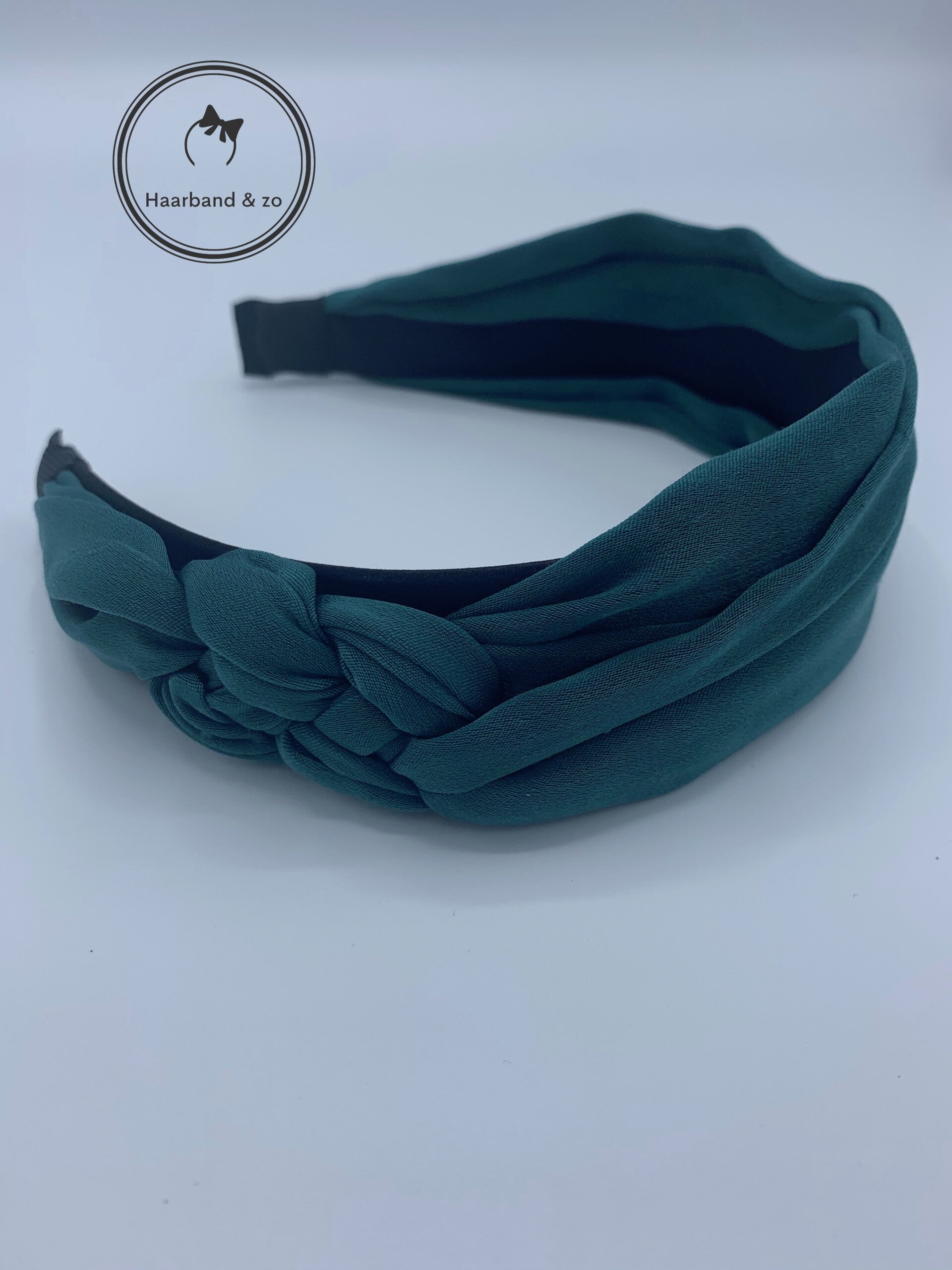 - Prachtige booghaarband van glanzend satijn, met vlechteffect in de kleur smaragd-groen.