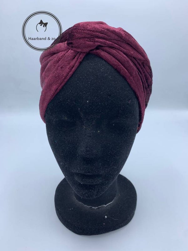 - Brede haarband met ijzerdraad van velours de panne. In een prachtige donkere wijnrode kleur. Van ons eigen merk.