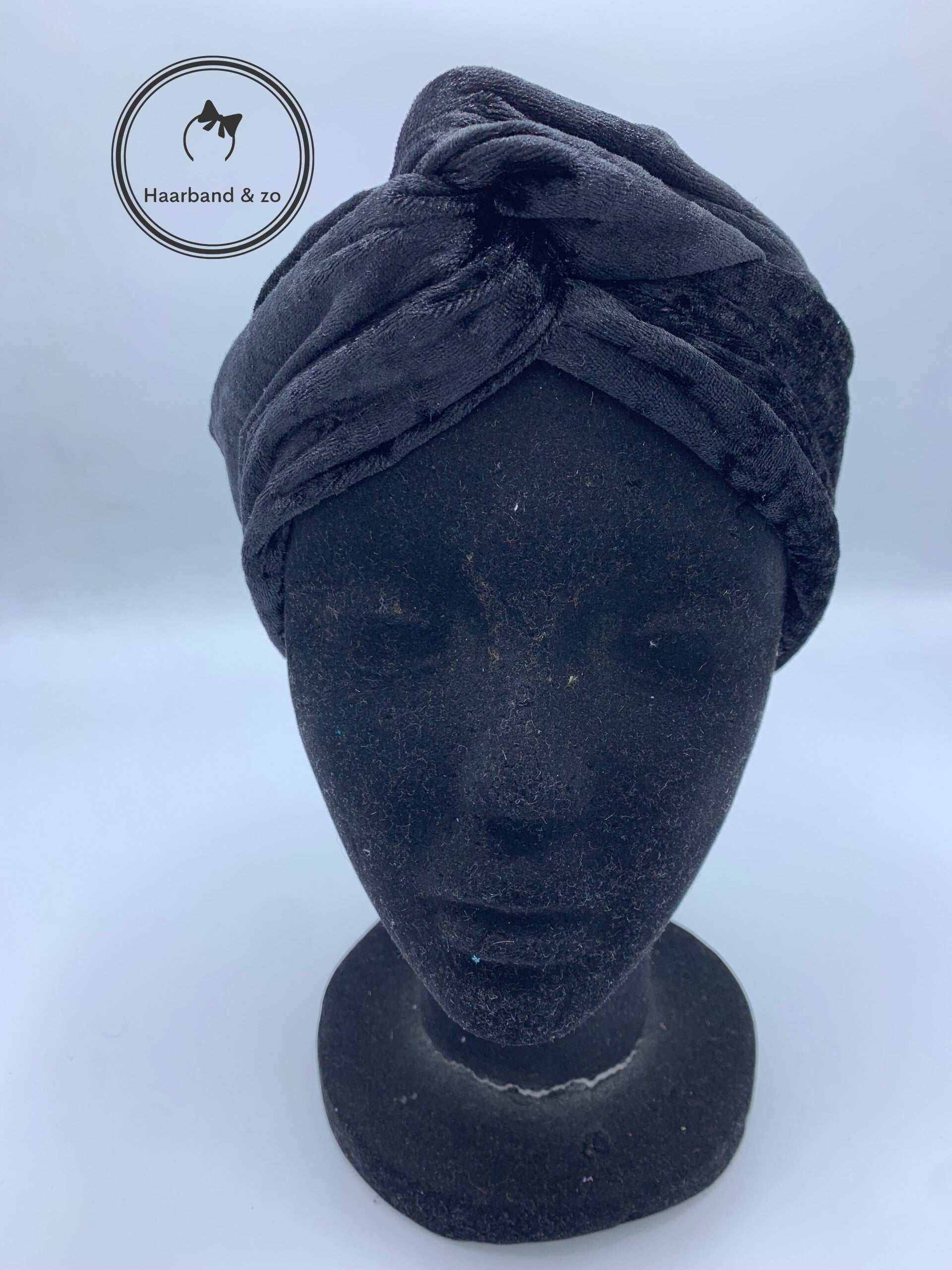 - Brede haarband met ijzerdraad van velours de panne. In de kleur zwart. Van ons eigen merk.