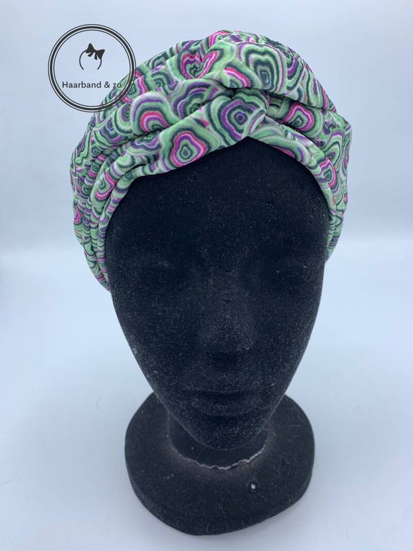 Haarband & zo, Haarband met ijzerdraad van jersey bubble, in groene retro print (art.nr. 181-01)