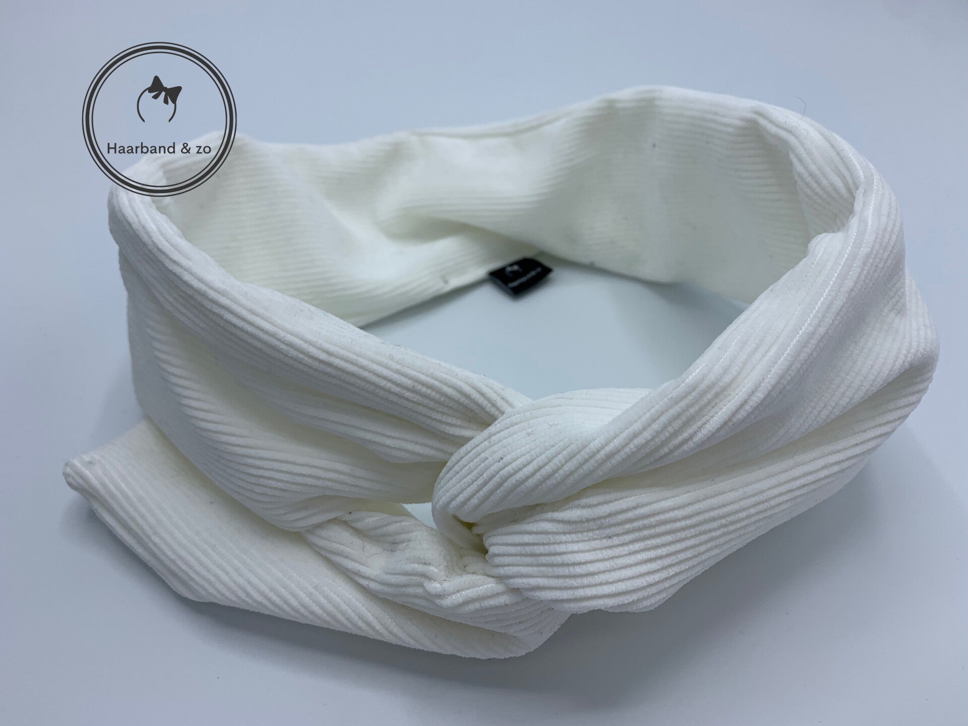 - Een heerlijke basic deze haarband van heerlijk zacht, ribfluweel, van ons eigen merk. In de kleur wit.