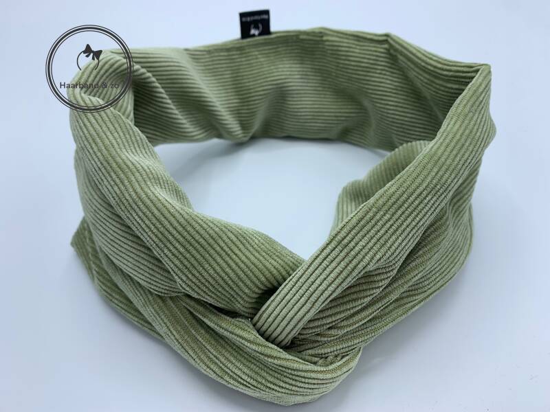 Haarband & zo, Haarband met ijzerdraad van fijn ribfluweel in de kleur olijfgroen (art.nr. 14-06)