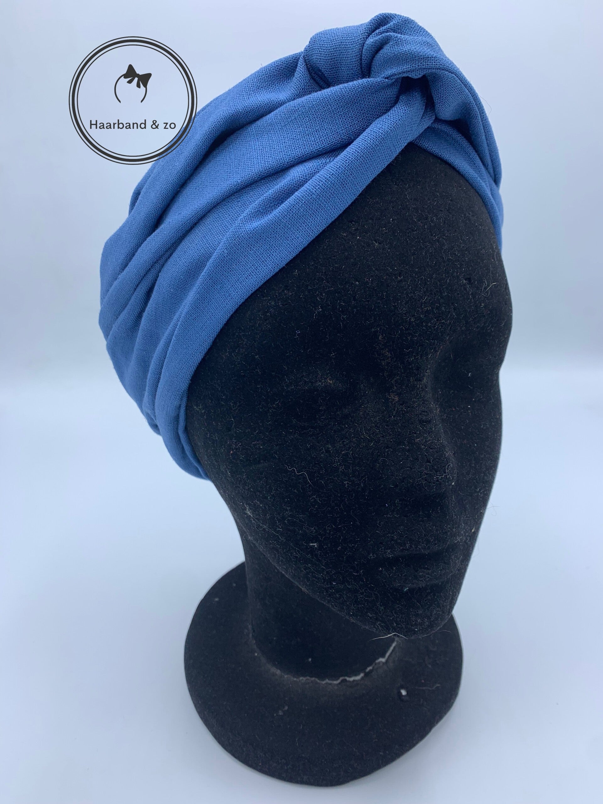 - Een prachitge brede haarband met ijzerdraad, in jeans blauw linnen. Van ons eigen merk.