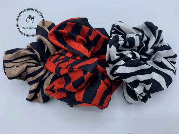 - Mooie scrunchie van stevig glanzend satijn, in zebraprint, in de kleur zwart/rood.