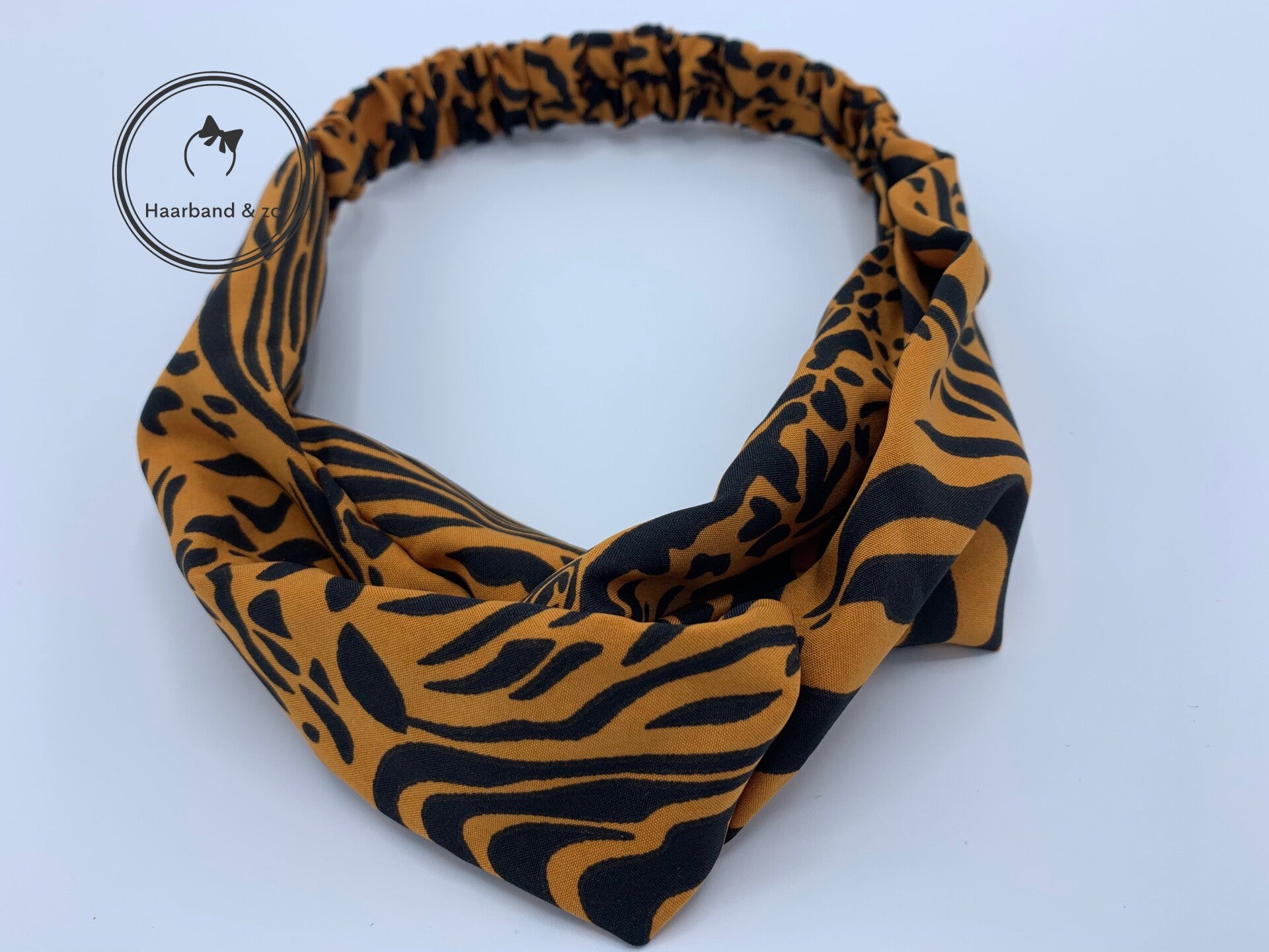 - Elastische haarband van satijn, zebra/tijgerprint in de kleur oranjebruin/zwart.