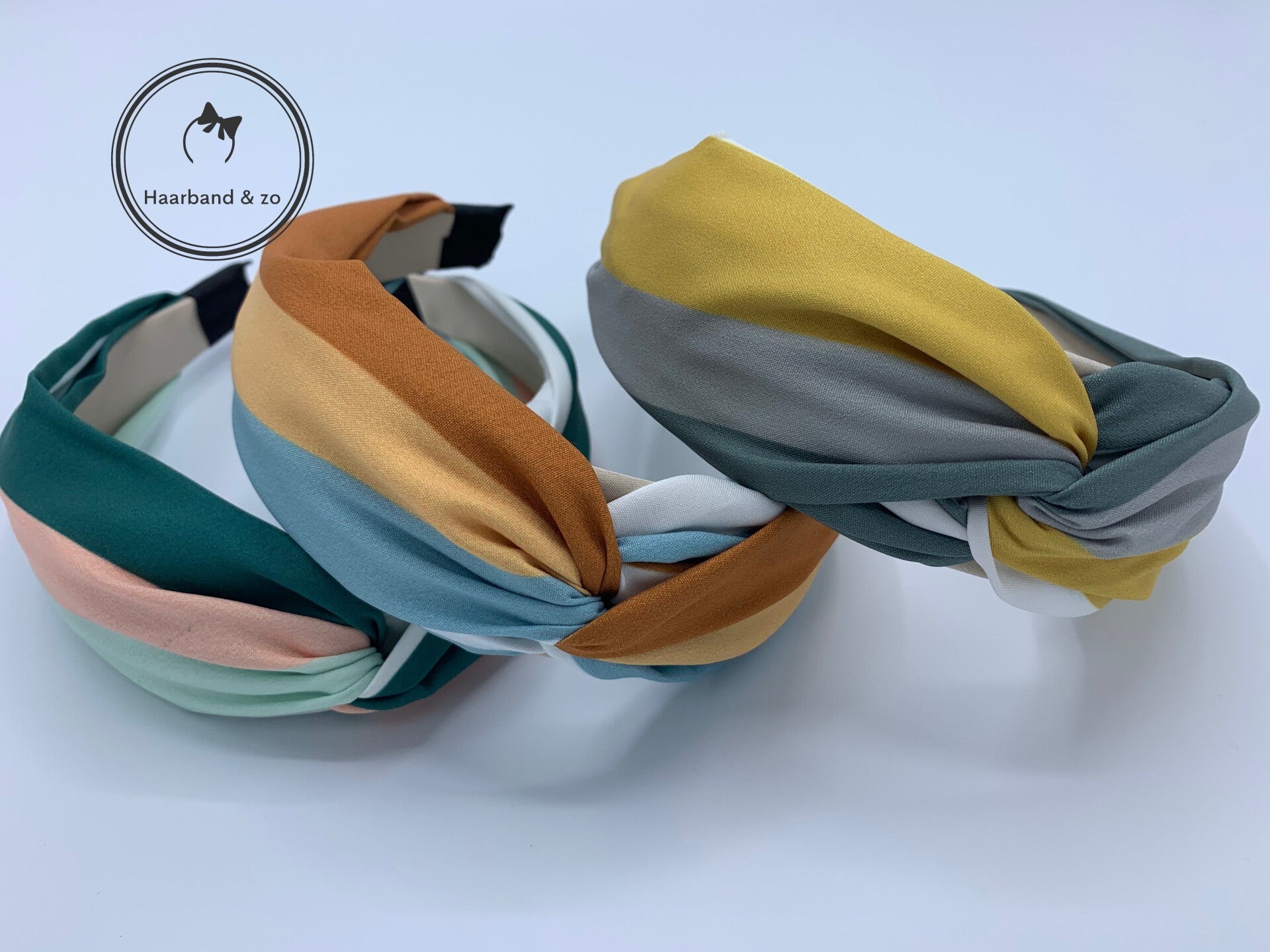 - Deze haarband is niet smal bovenop, maar gemaakt zoals een brede knoophaarband, de twist zit om een brede haarband gemaakt, welke soms minimaal zichtbaar is. Zit daardoor in tegenstelling tot de 'twisthaarbanden' een beetje steviger om het hoofd.