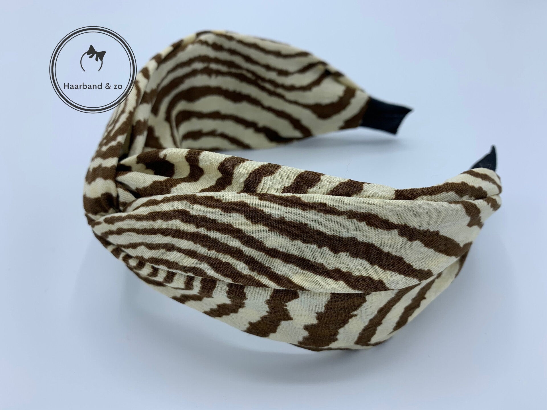 - Een echte topper deze prachtige haarband van gekreukd chiffon, in zebra-motief, in de kleur bruin met creme.