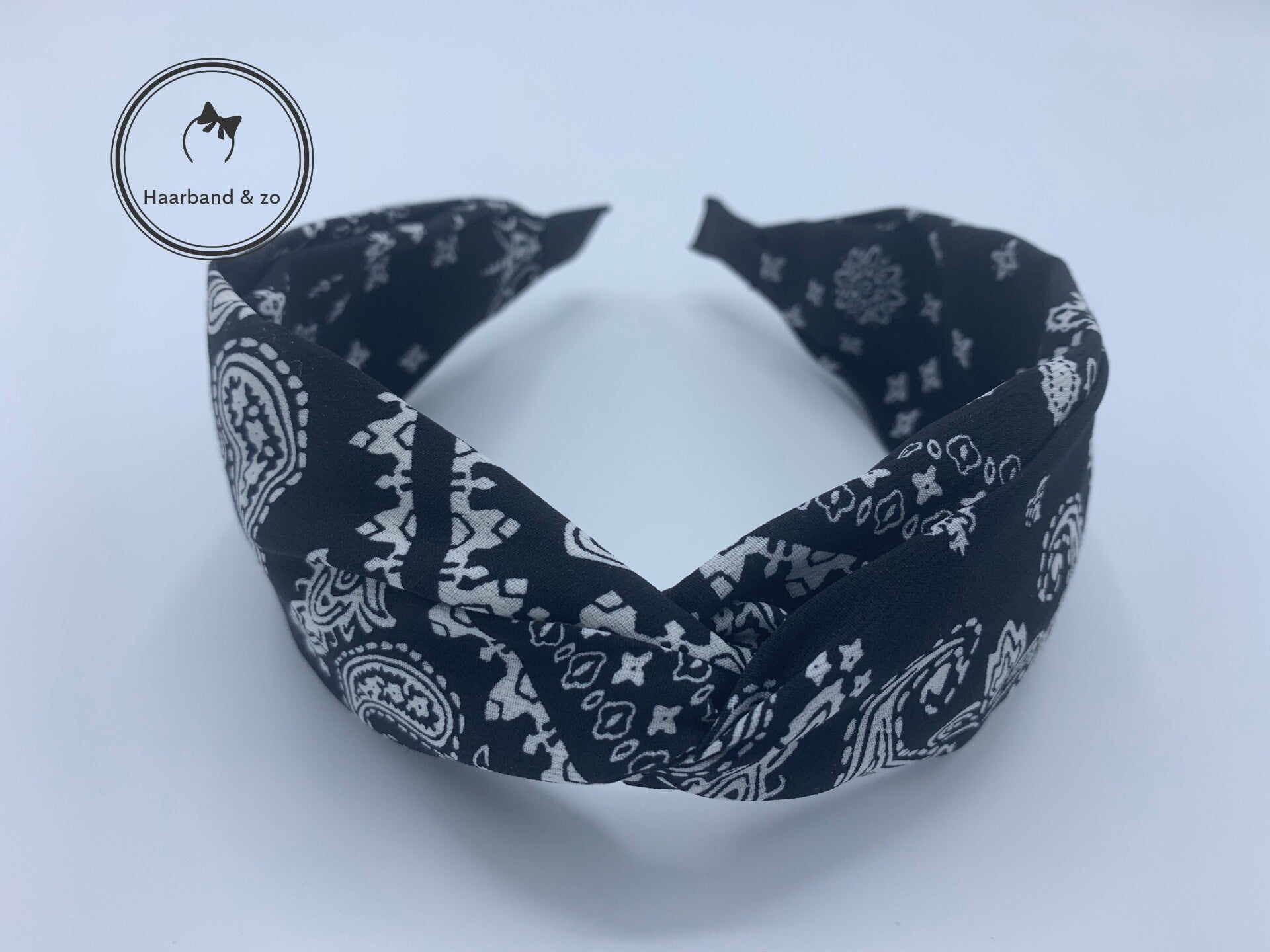- Brede haarband met twist in bandana-motief in de kleur zwart.