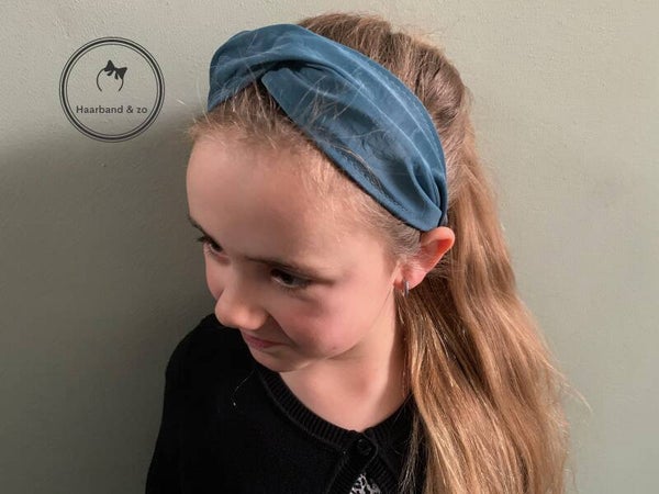 - De haarband is op het breedste punt ruim 7 cm. Als je deze haarband op je hoofd zet is het goed om de stof even vast te houden, zodat de haarband zo breed mogelijk in je haar zit.