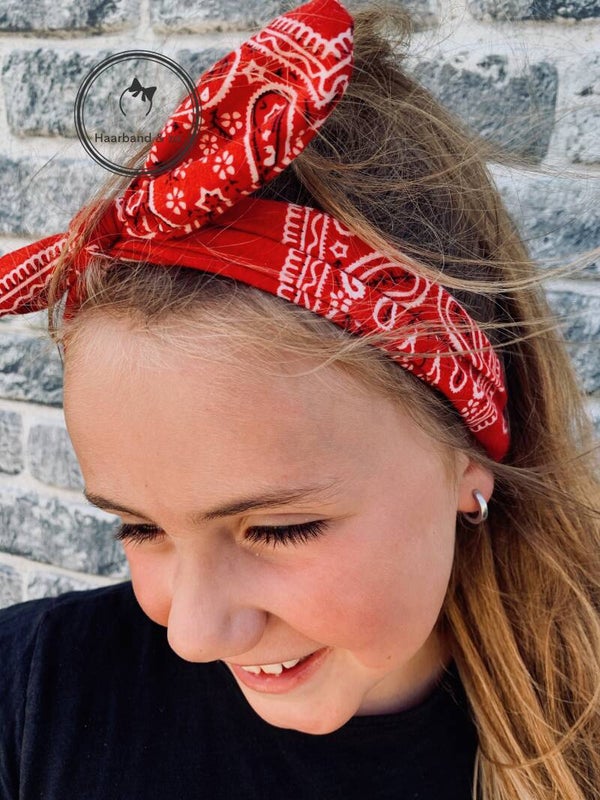 - Heerlijk zachte haarband van tricot, met bandanamotief in de kleur turquoise.