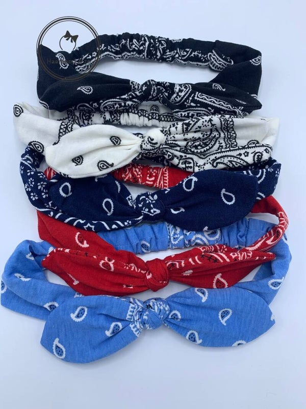 - Heerlijk zachte haarband van tricot, met bandanamotief in de kleur geel.