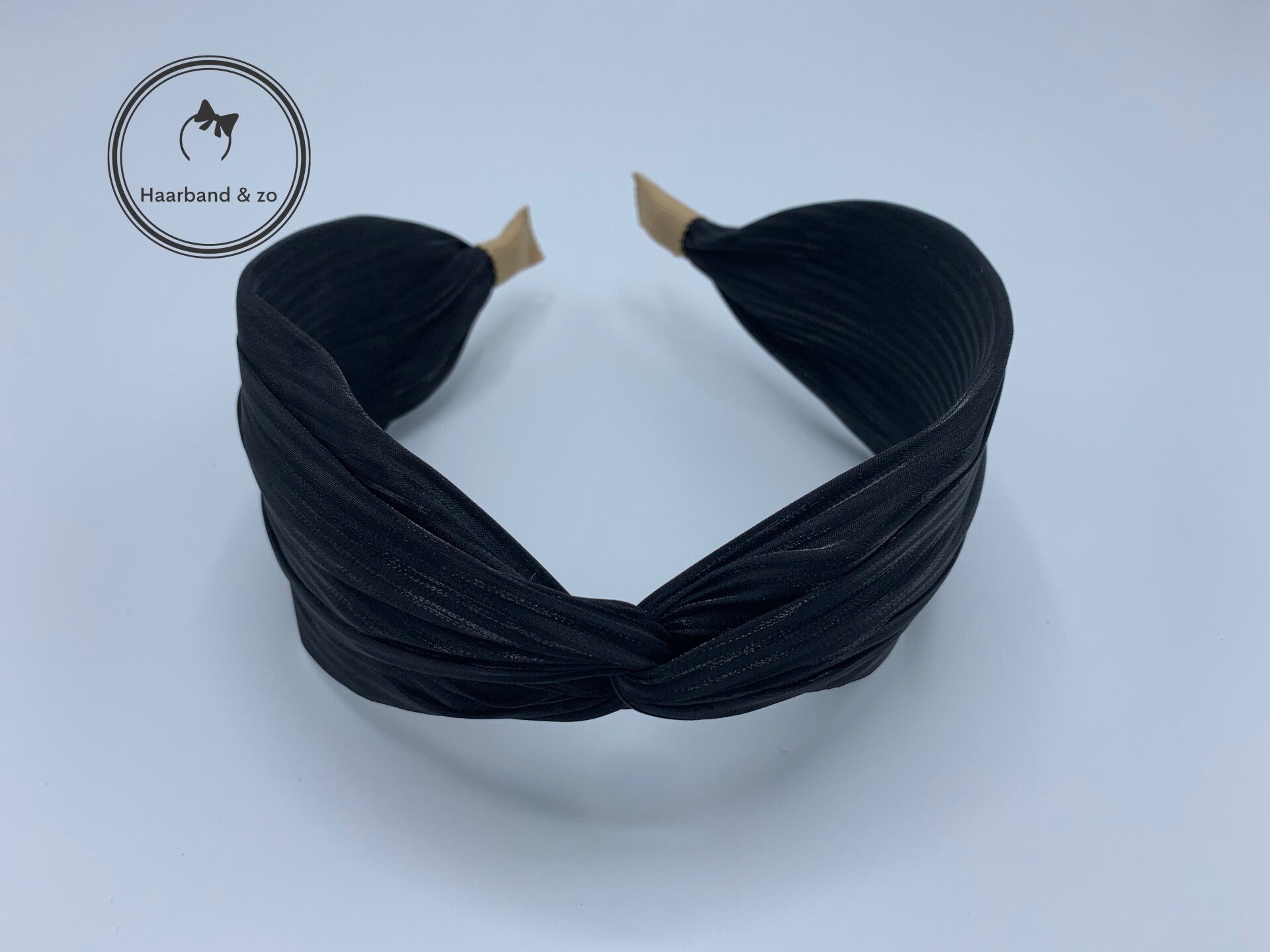 - Prachtige brede booghaarband met twist, uitgevoerd in glanzend satijn met steepje. In de kleur zwart.
