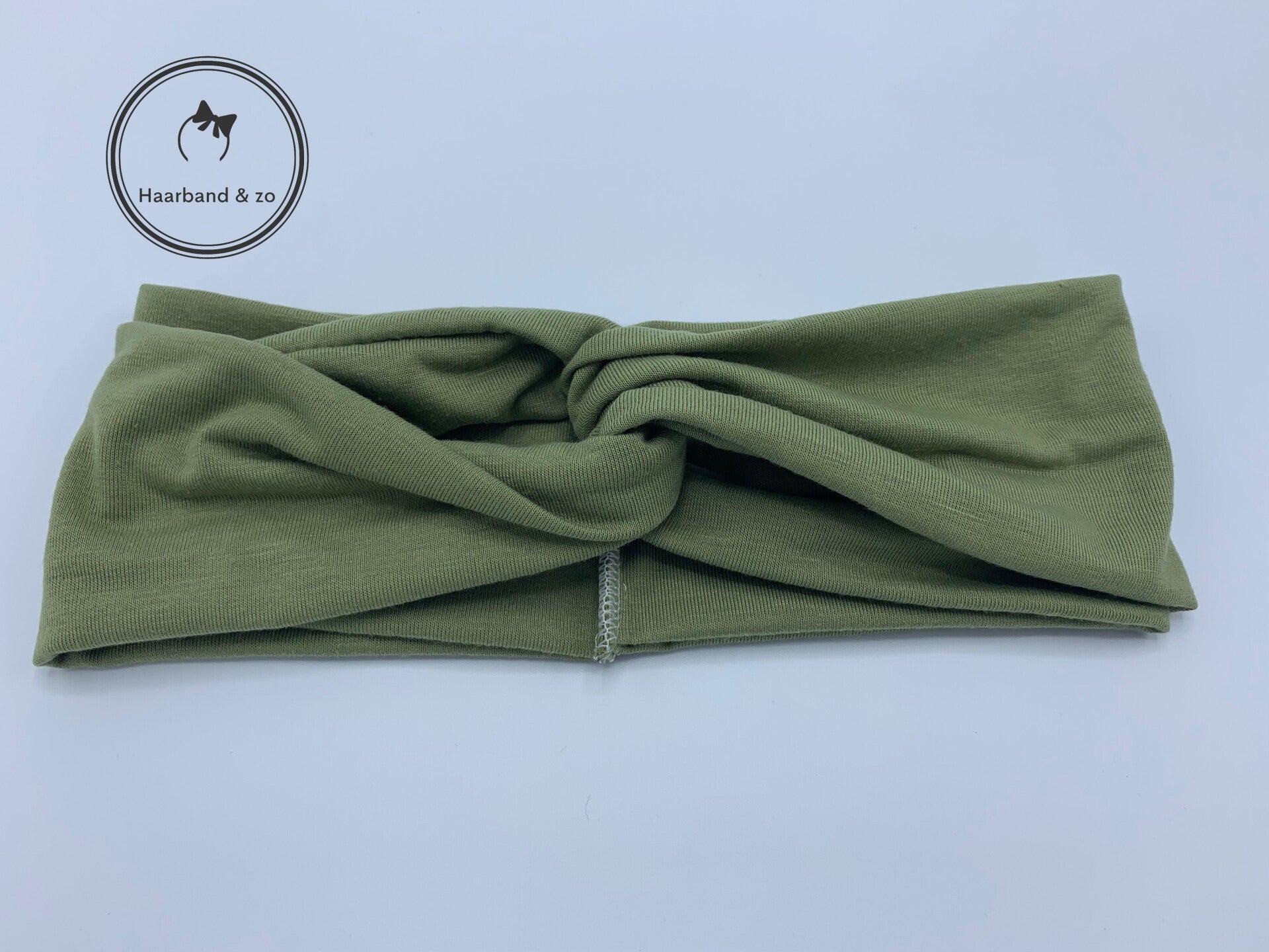 Elastische haarband van stevig tricot, met twist in de kleur olijfgroen (art.nr. 217-07)