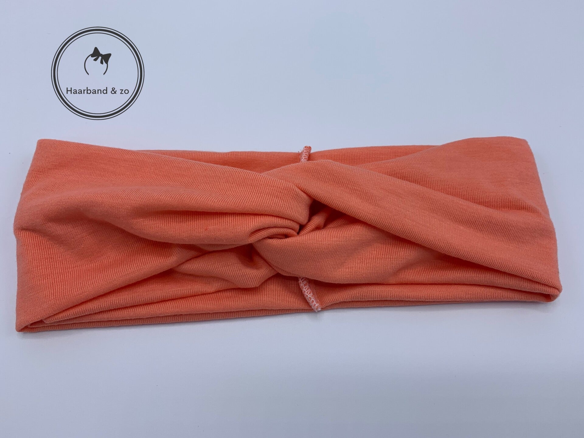 Elastische haarband van stevig tricot, met twist in de kleur zalmroze (art.nr. 217-03)