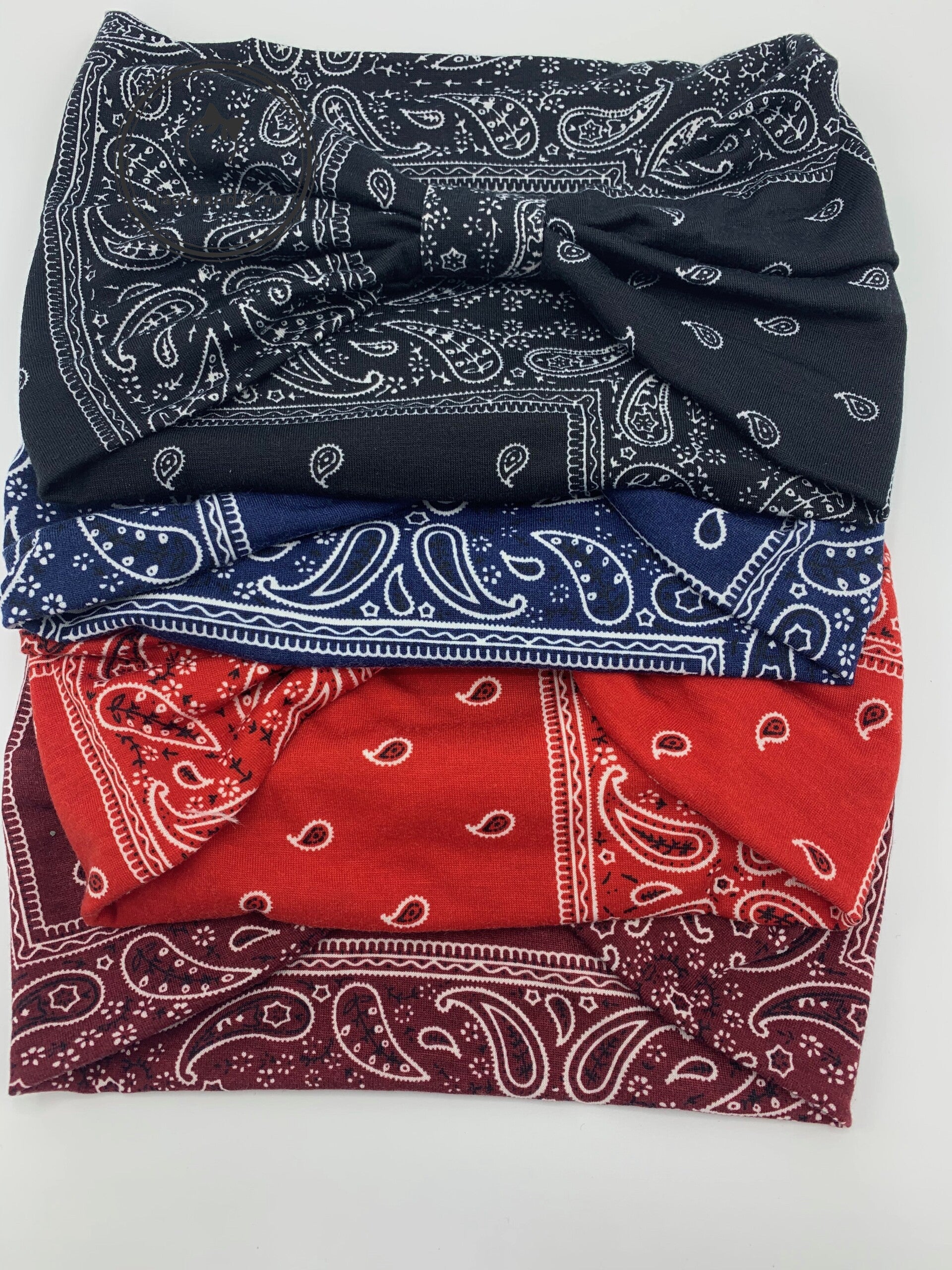 - Deze haarband is superbreed, uitgevoerd in zacht elastisch tricot, in bandanamotief. In de kleur bordeauxrood.