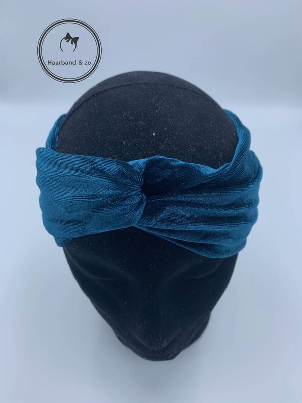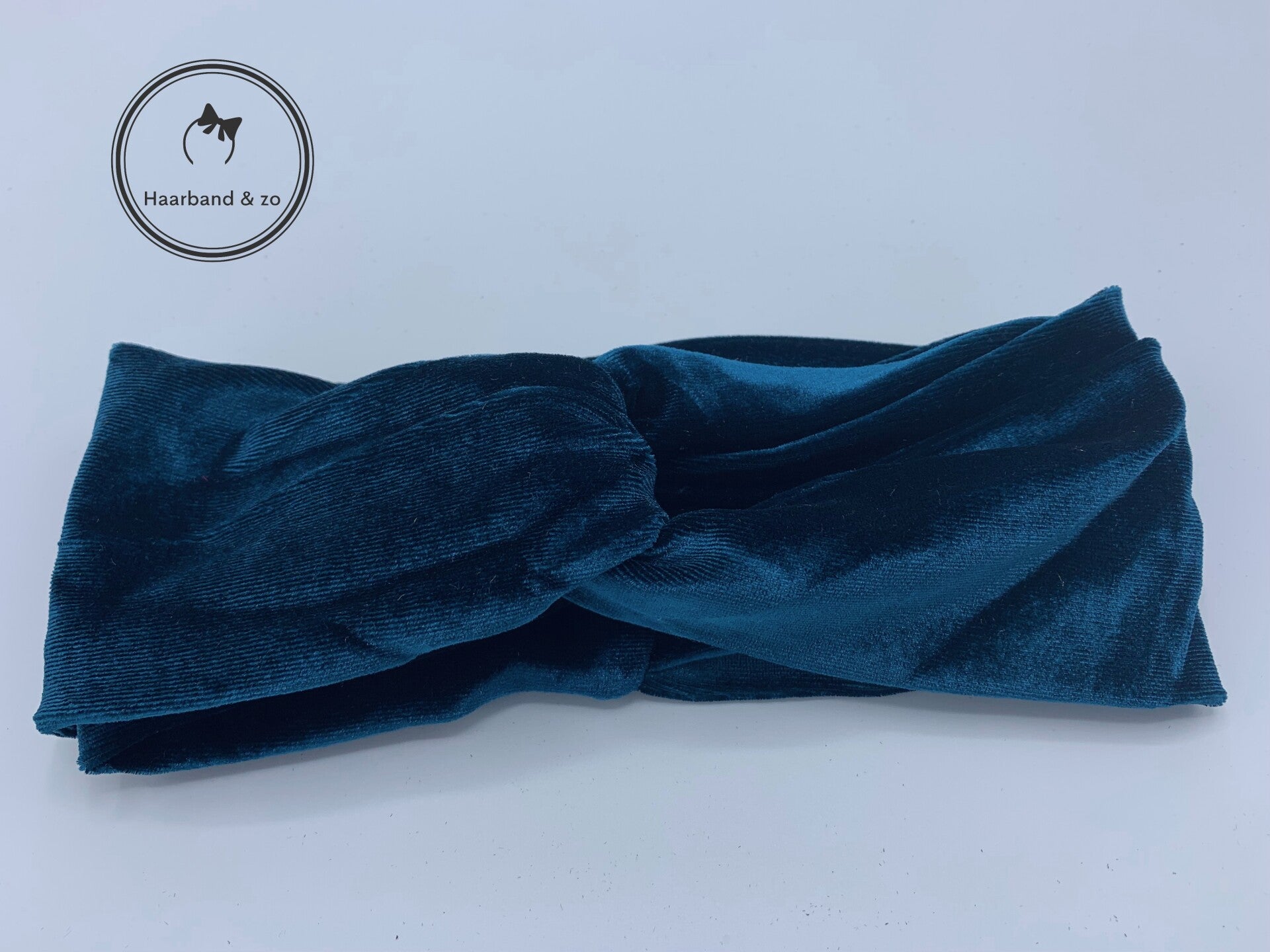 Prachtige elastische haarband van fluweel met twist, blauwgroen (art.nr. 72-06)