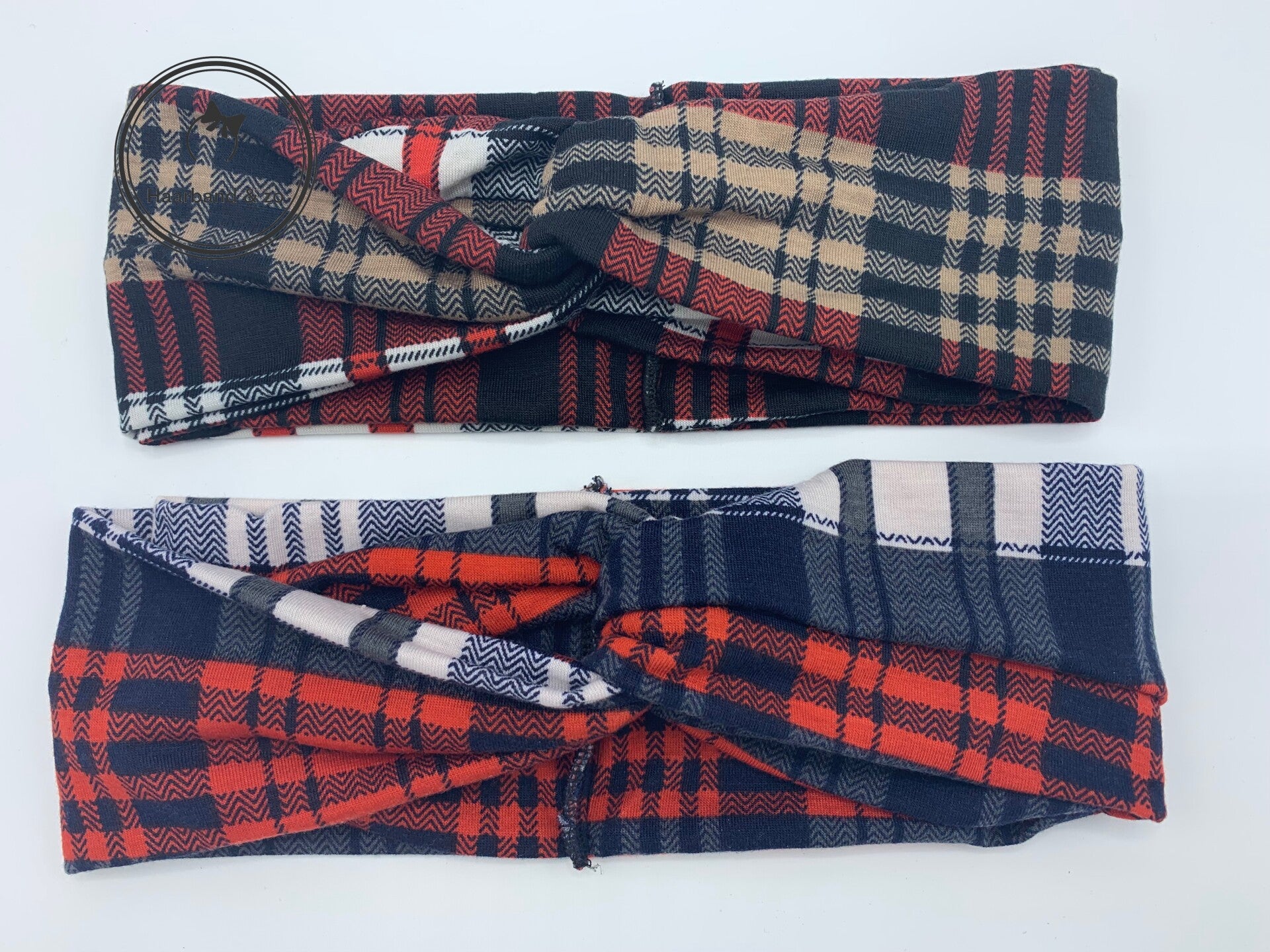 - Deze haarband is verkrijgbaar in 2 kleuren, donkerblauw met rood en zwart met khaki en rood.